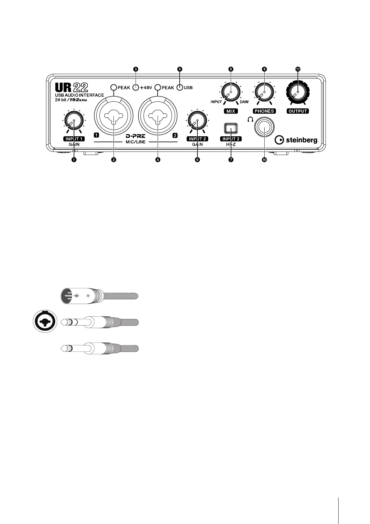2 [MIC/LINE 1] jack/[PEAK] indicator