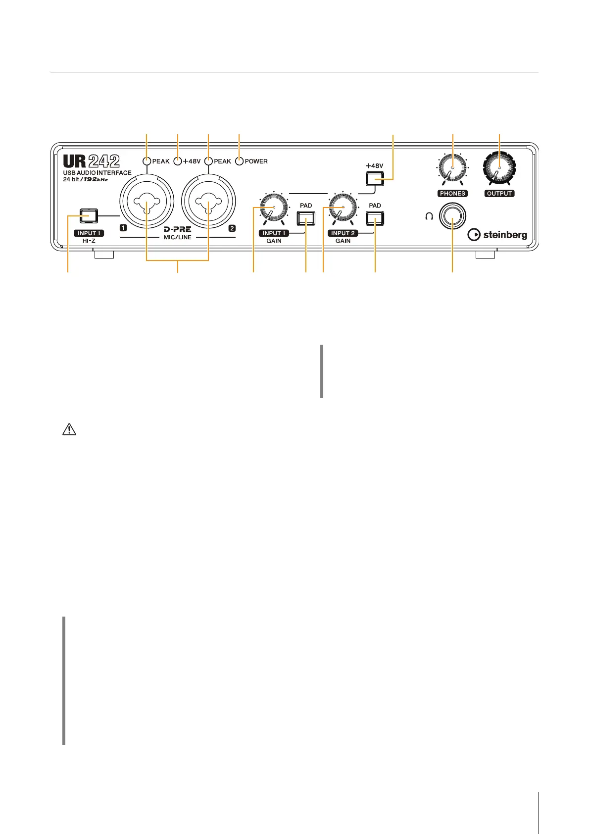 on the [INPUT 1 HI-Z] switch. Doing so can damage