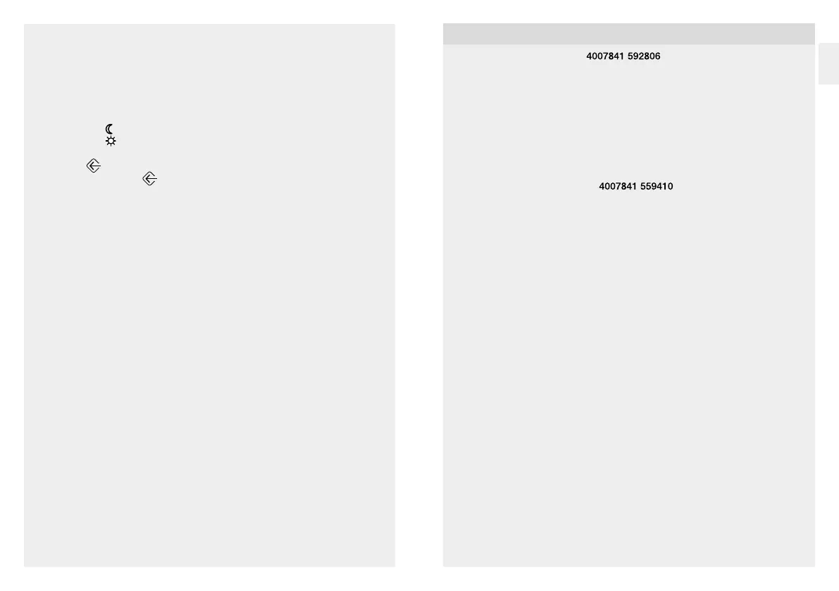 – Basic brightness: OFF, night, 1 = 10% ... 6 = 60%, press for ≥ 5 s