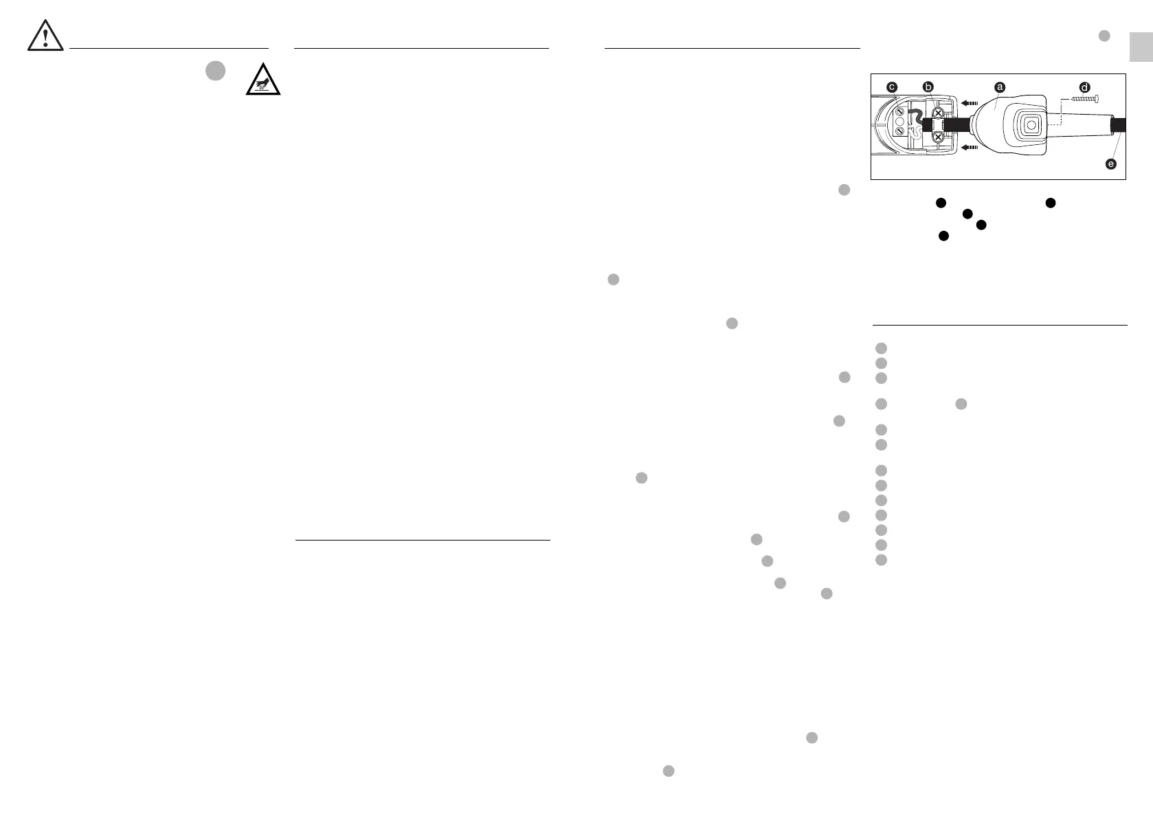(1. Firmly screw down mains terminals etc.).