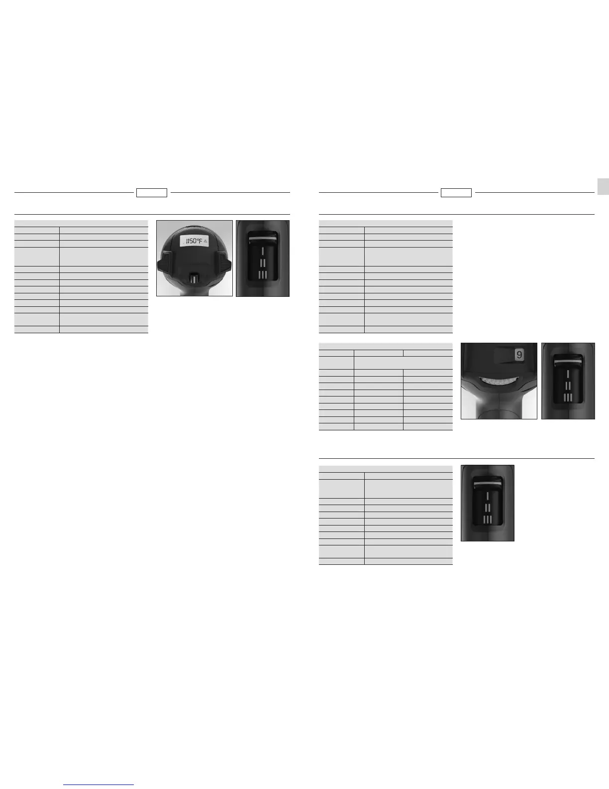 settings 2 and 3 at the toggle. The tool is factory set to display the temperature in °F. The target temperature