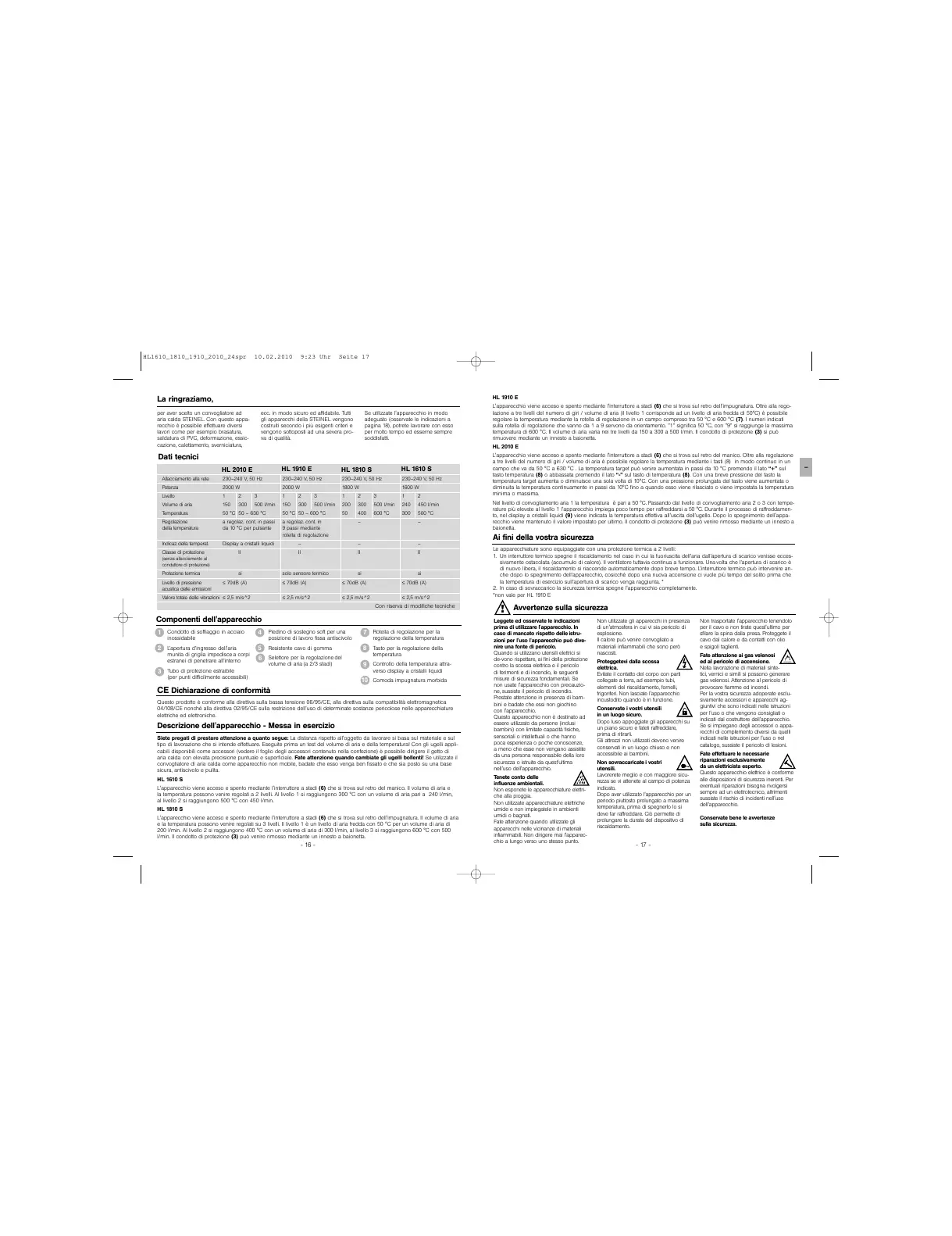 *non vale per HL 1910 E