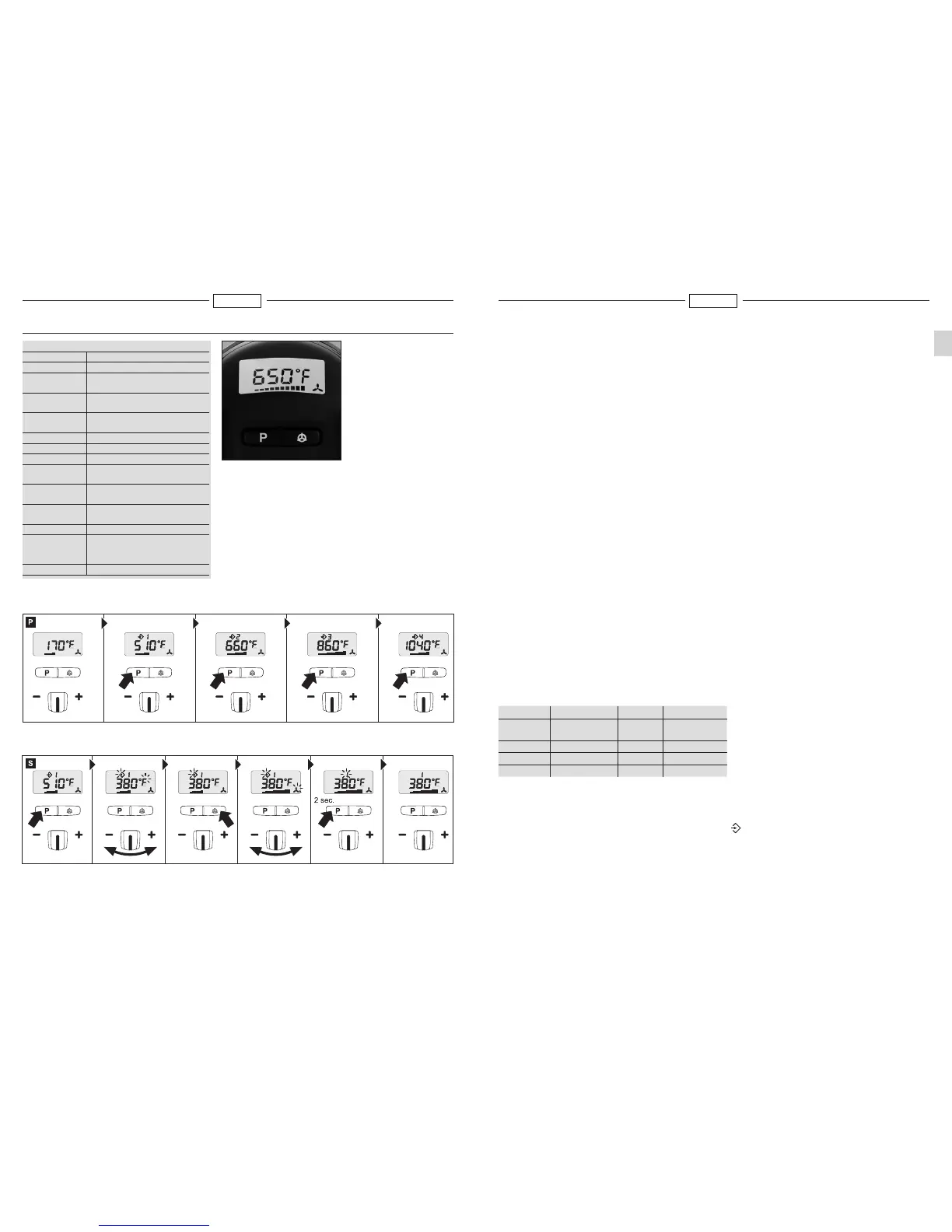 sin escalas de 120 °F (49 °C) a 1200 °F (649 °C) vía el panel de control con visualizador LCD. La tempera-