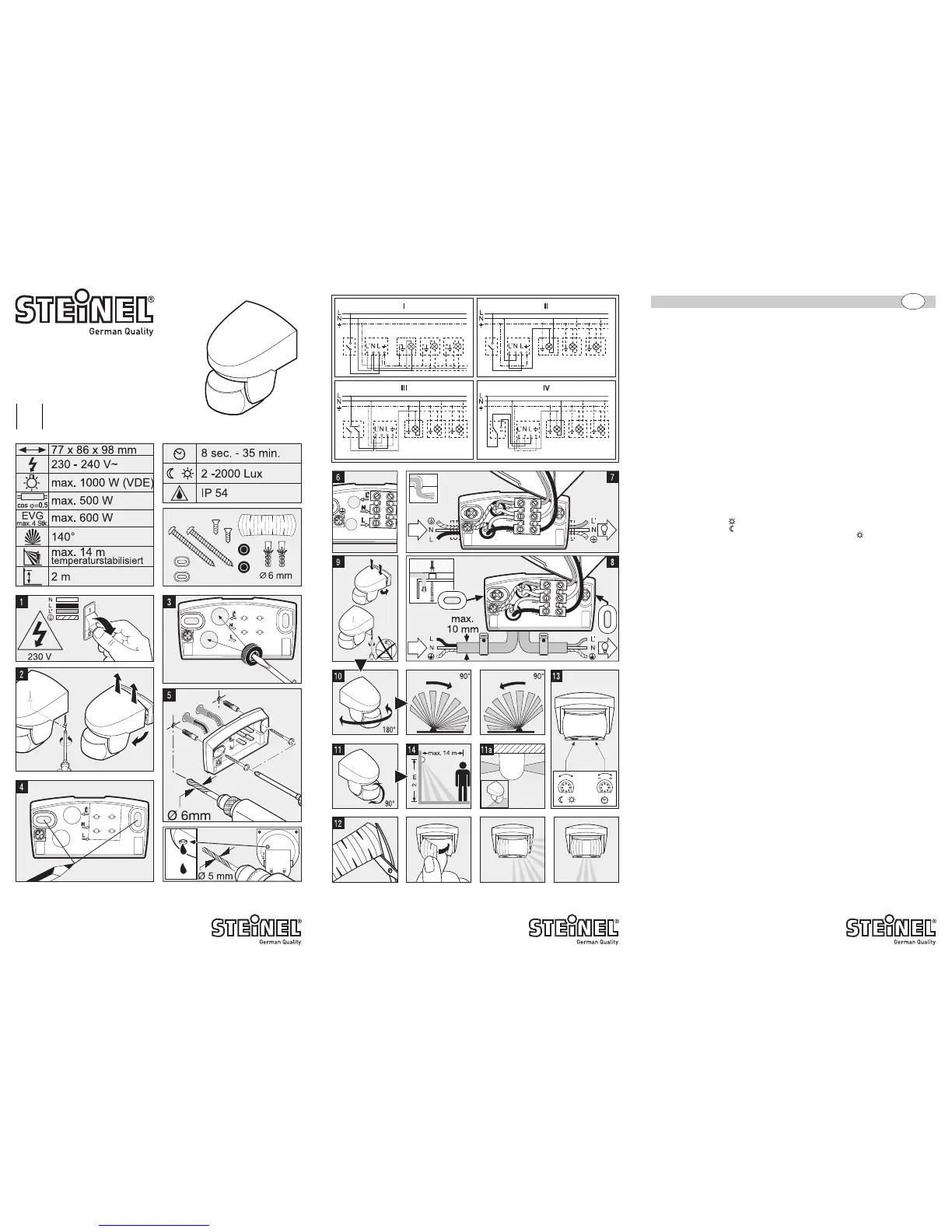 cédures fiables et il a été soumis à un contrôle final par sondage. Steinel garantit un état et un fonctionnement irréprochables.