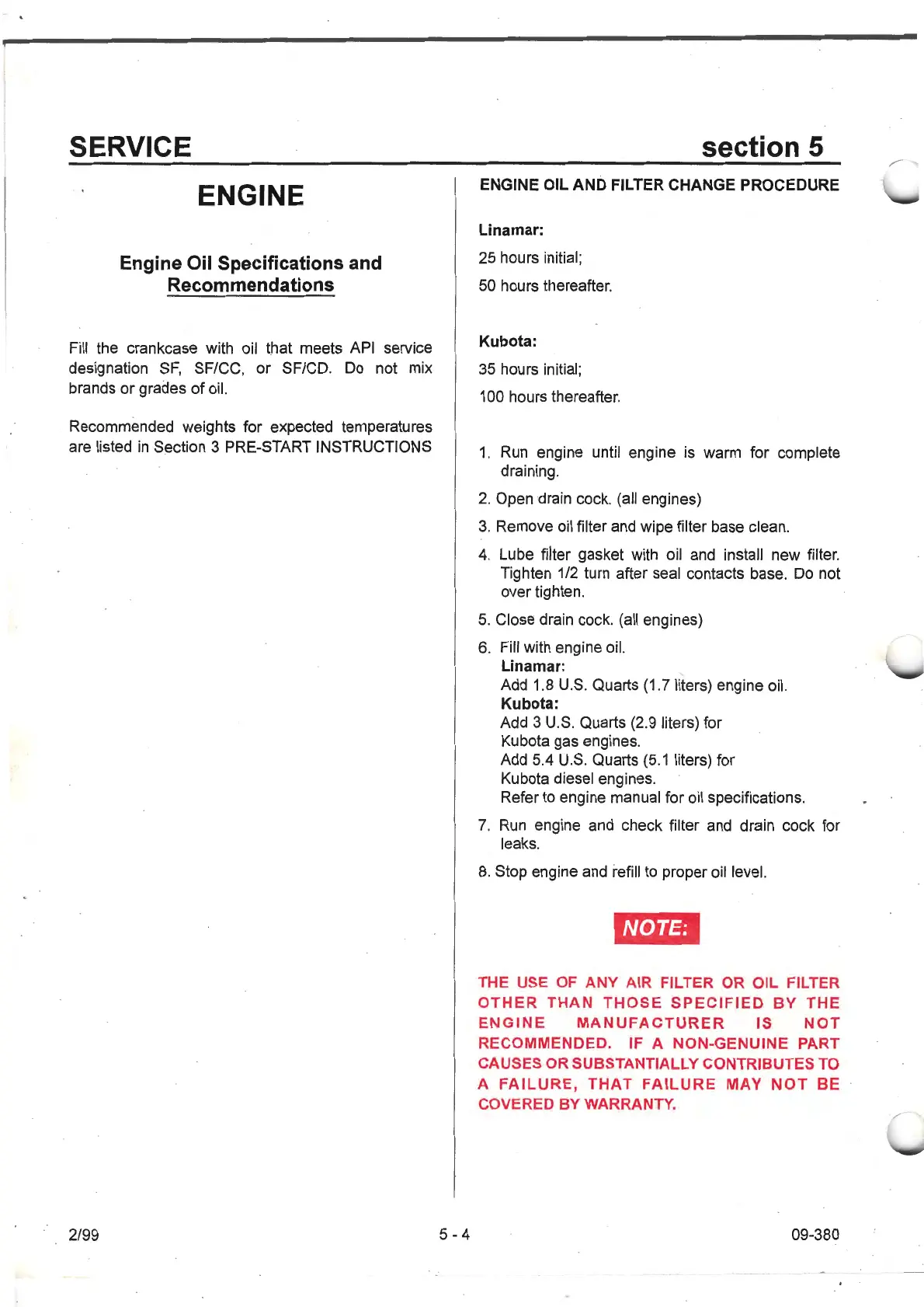 ENGINE OIL AND FILTER CHANGE PROCEDURE