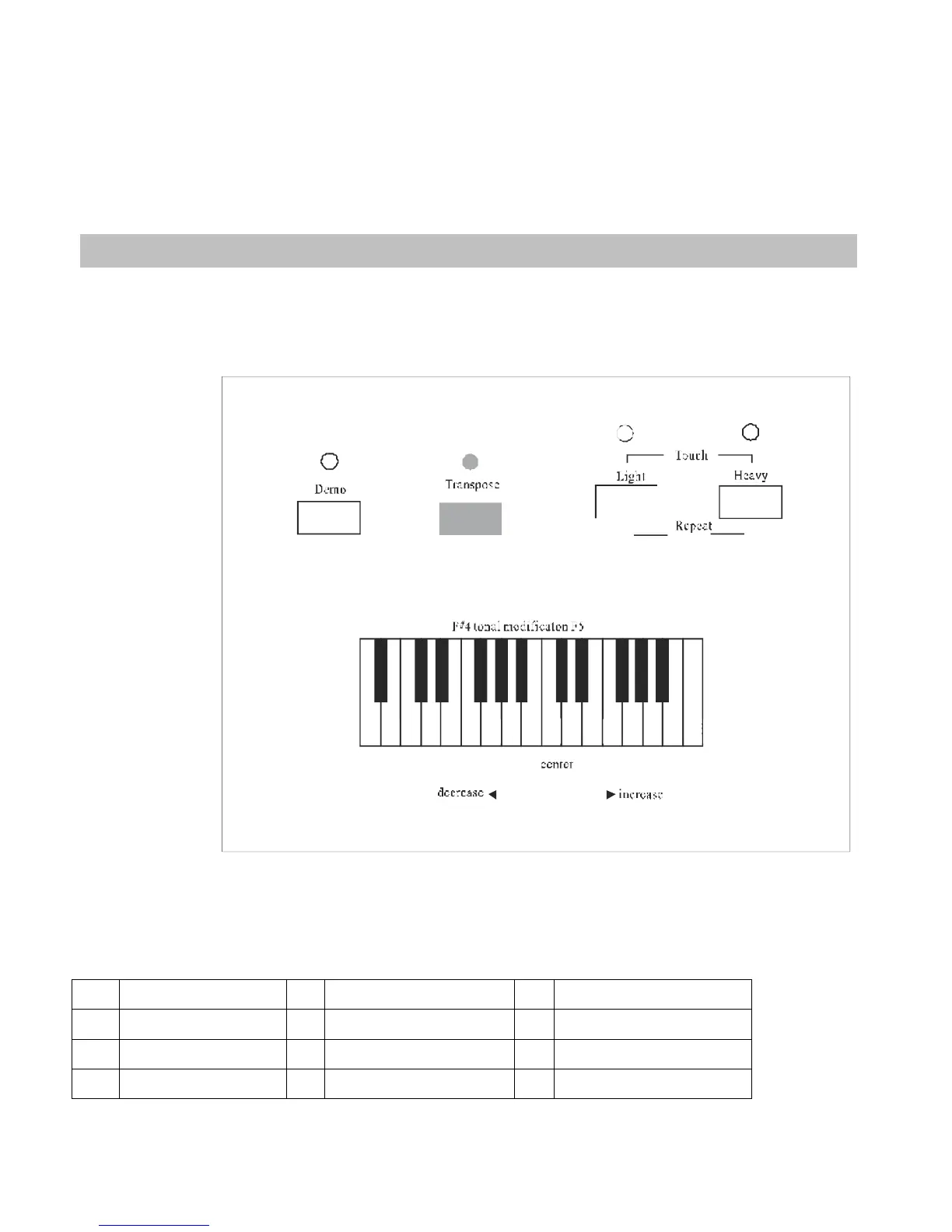32 songs are stored in the piano. Press the demo button while pressing the appointed key in the following picture to start the