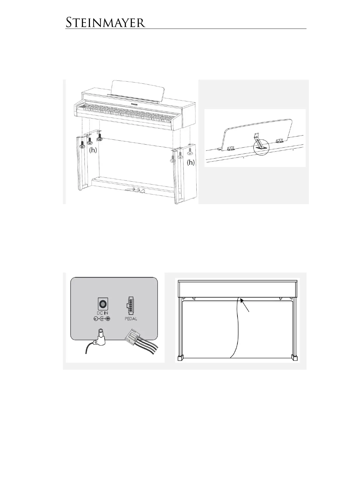 Steinmayer DP 361 - Fitting the Piano Console; Connect the Pedal Cable and Power Cord