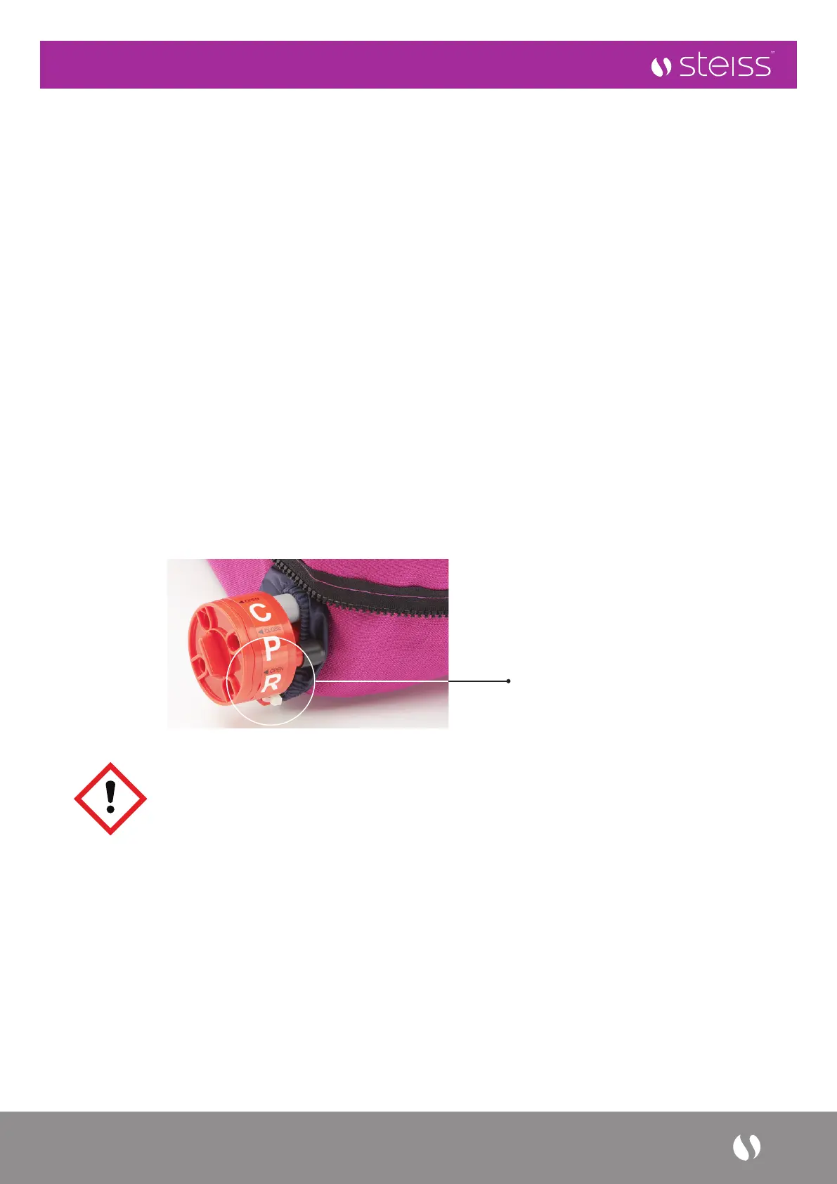 In the event of cardiac arrest, turn the CPR valves to the ‘OPEN’ position for fast deation of the air mattress