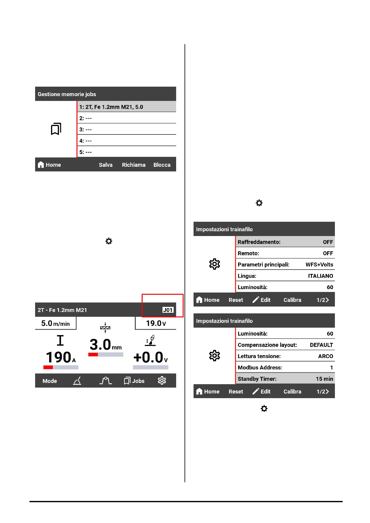 1) Premere il pulsante JOBS per entrare nella