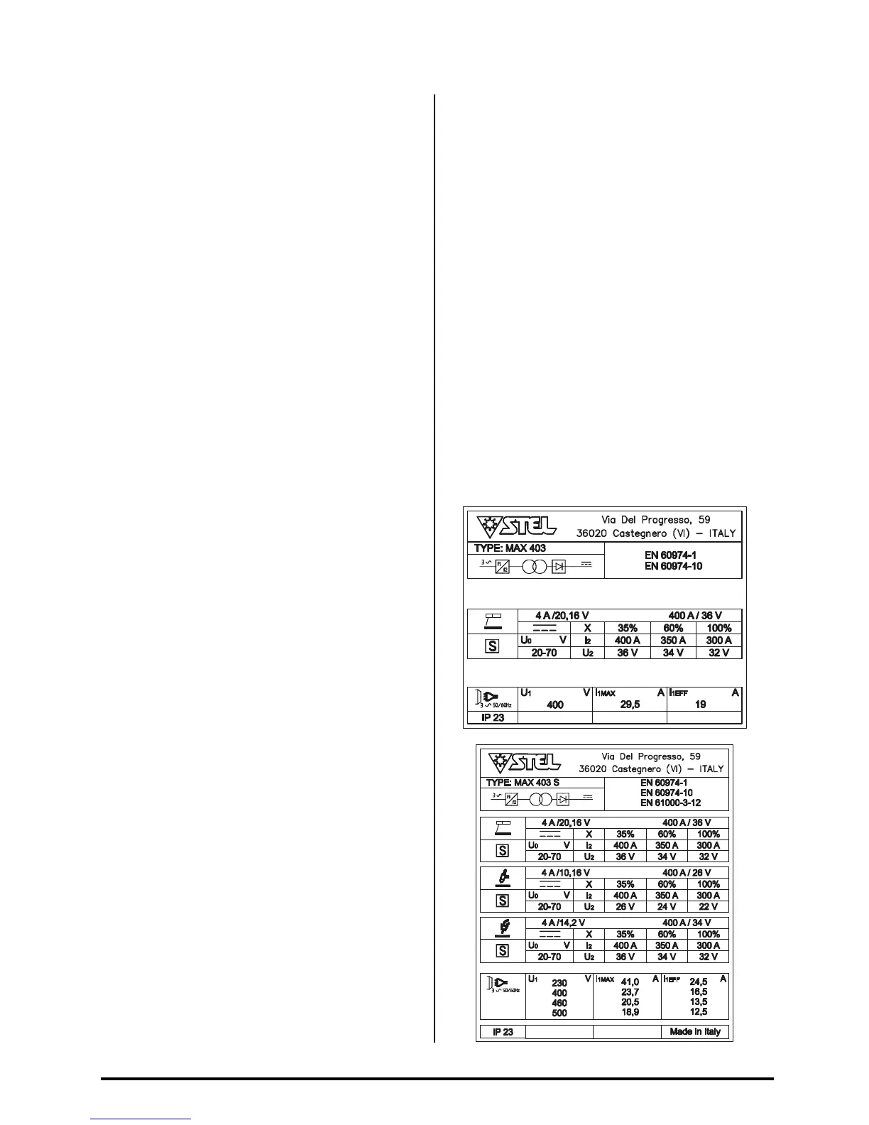 N.B. Il generatore non è adatto per sgelare tubi.