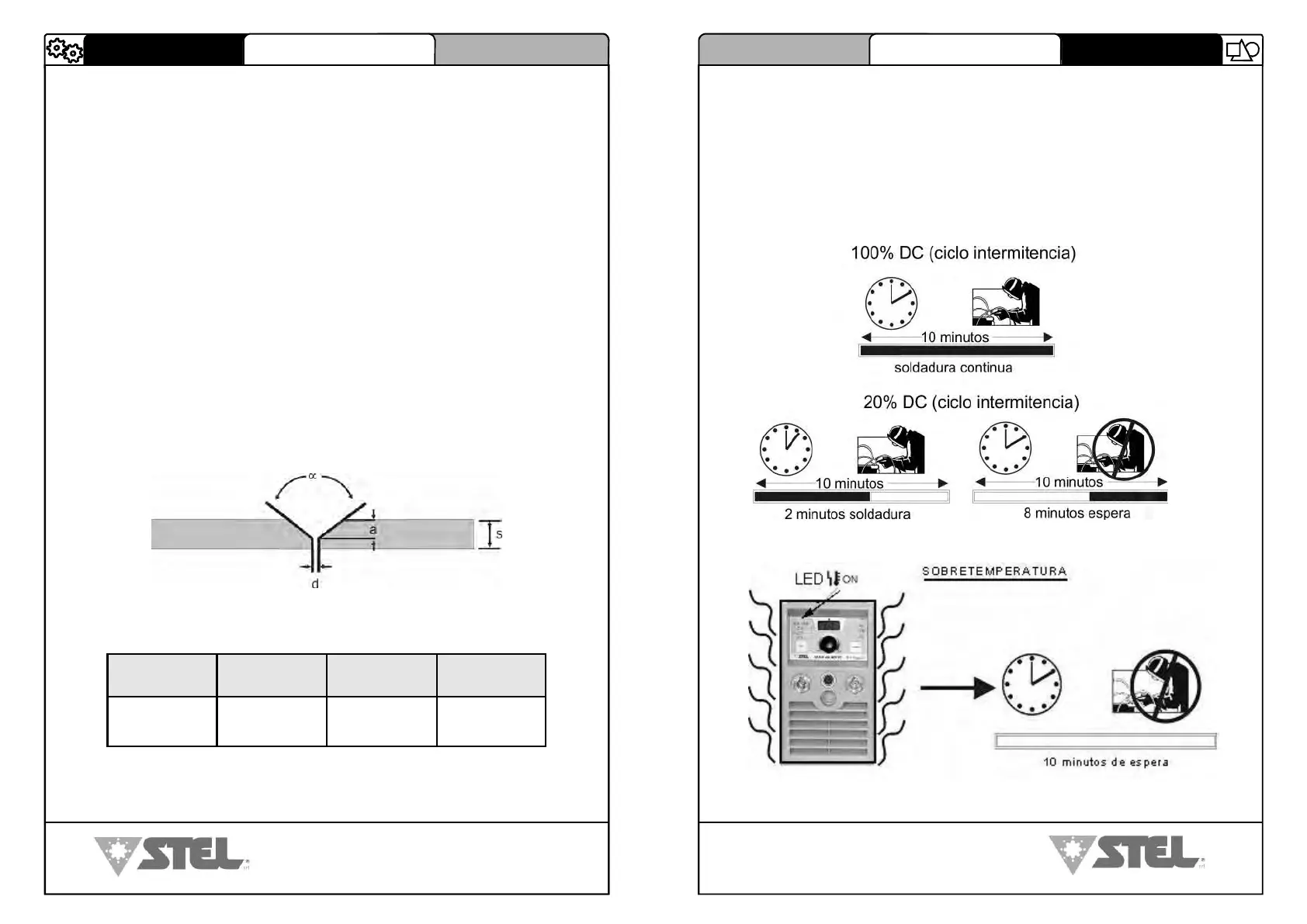El ciclo de intermitencia es el porcentaje de utilización de la soldadora sobre 10