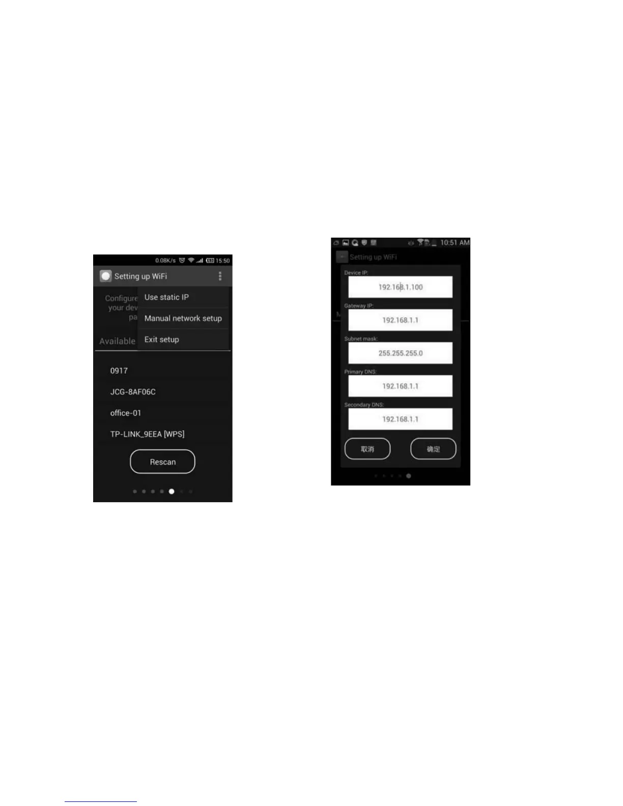 For static IP configuration a display is shown