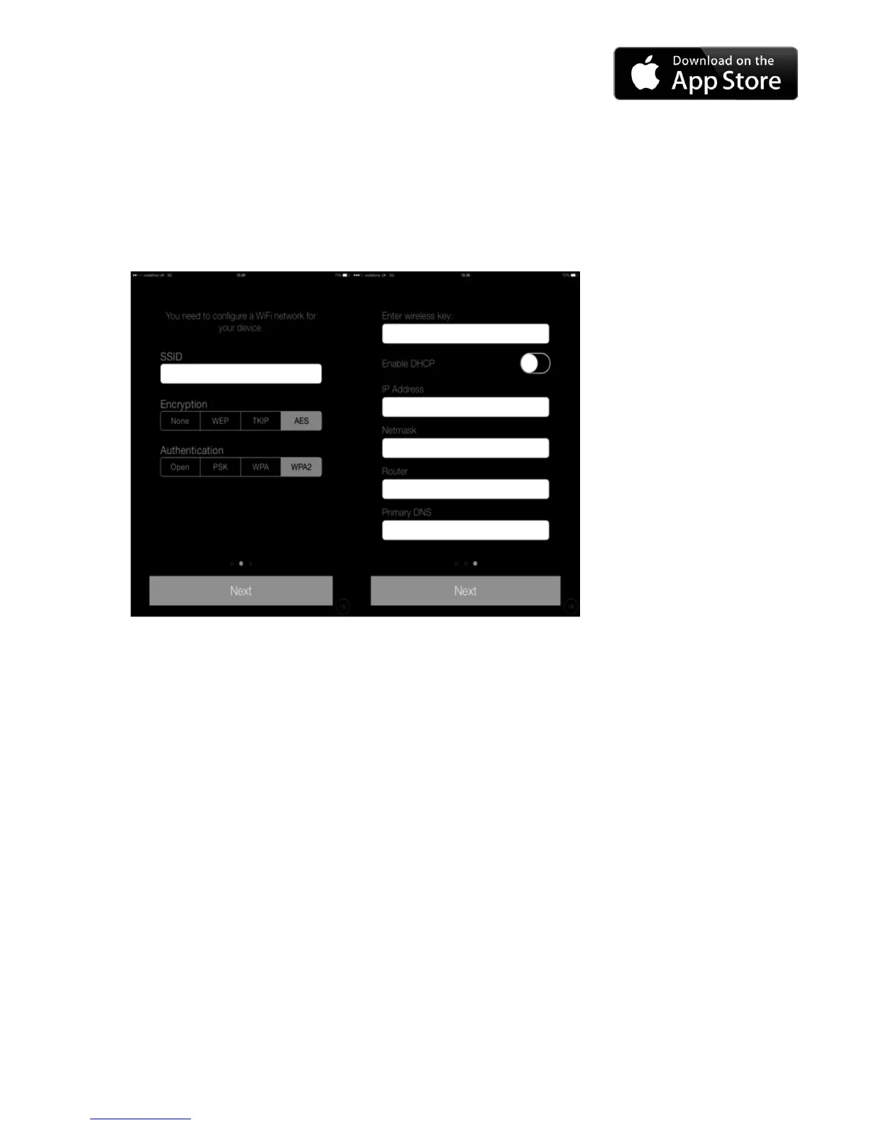 following screens: