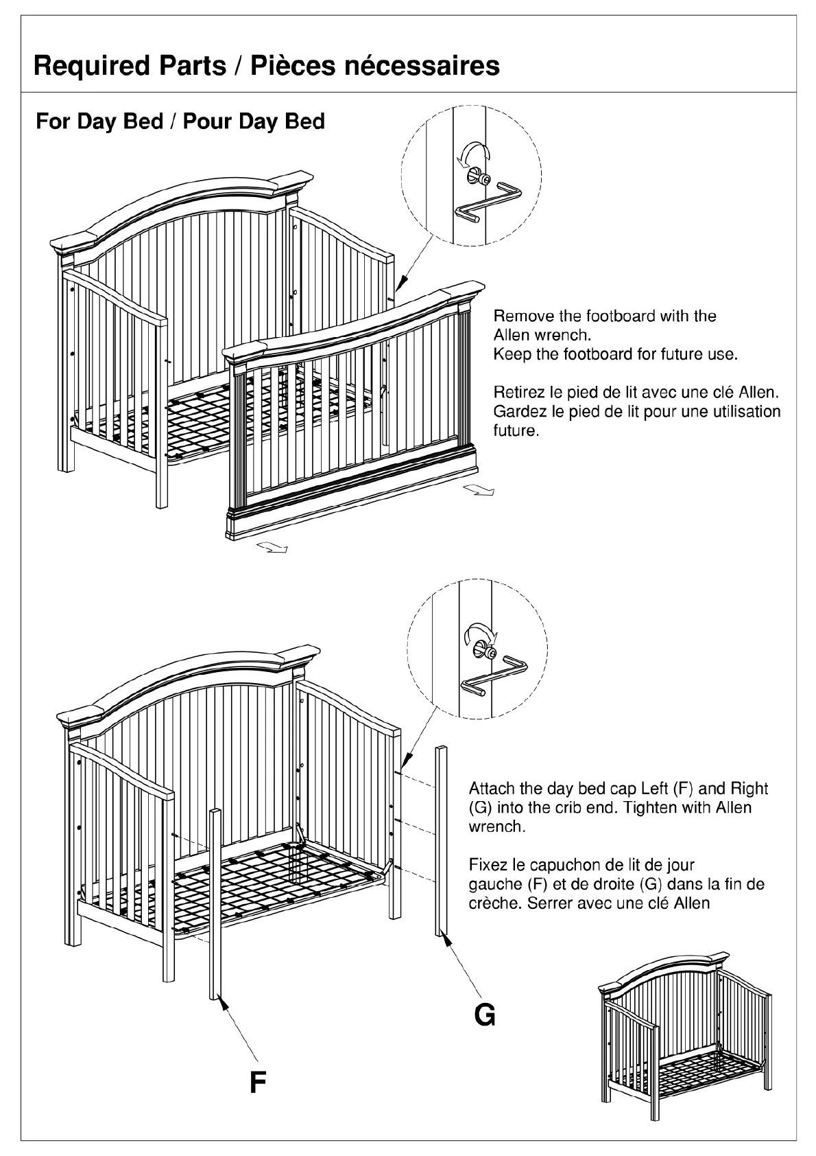 (G) into the crib end. Tighten with Allen