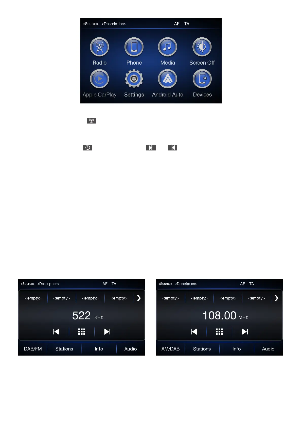 according to the band selected: AM, FM, DAB (if available)).