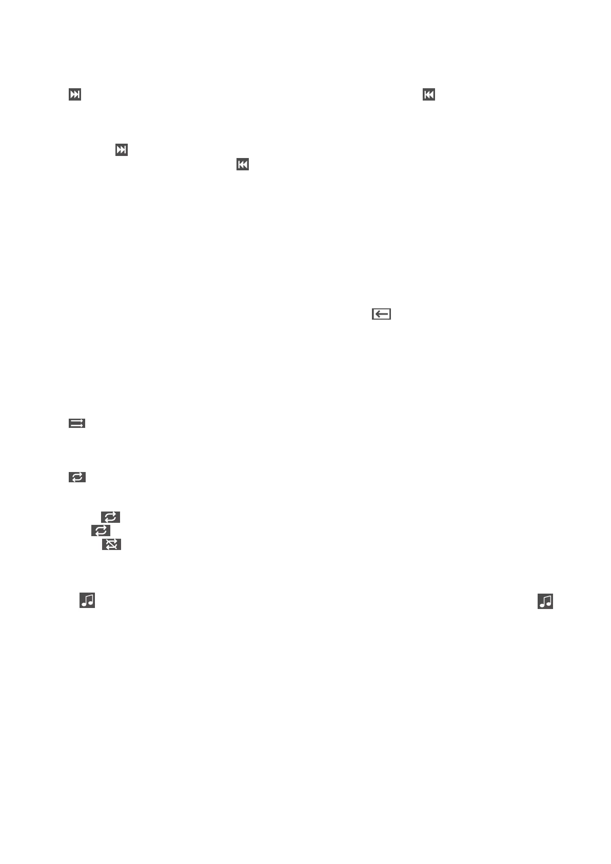 Press button to play the next selection (which can be track/picture). Press button to return to the