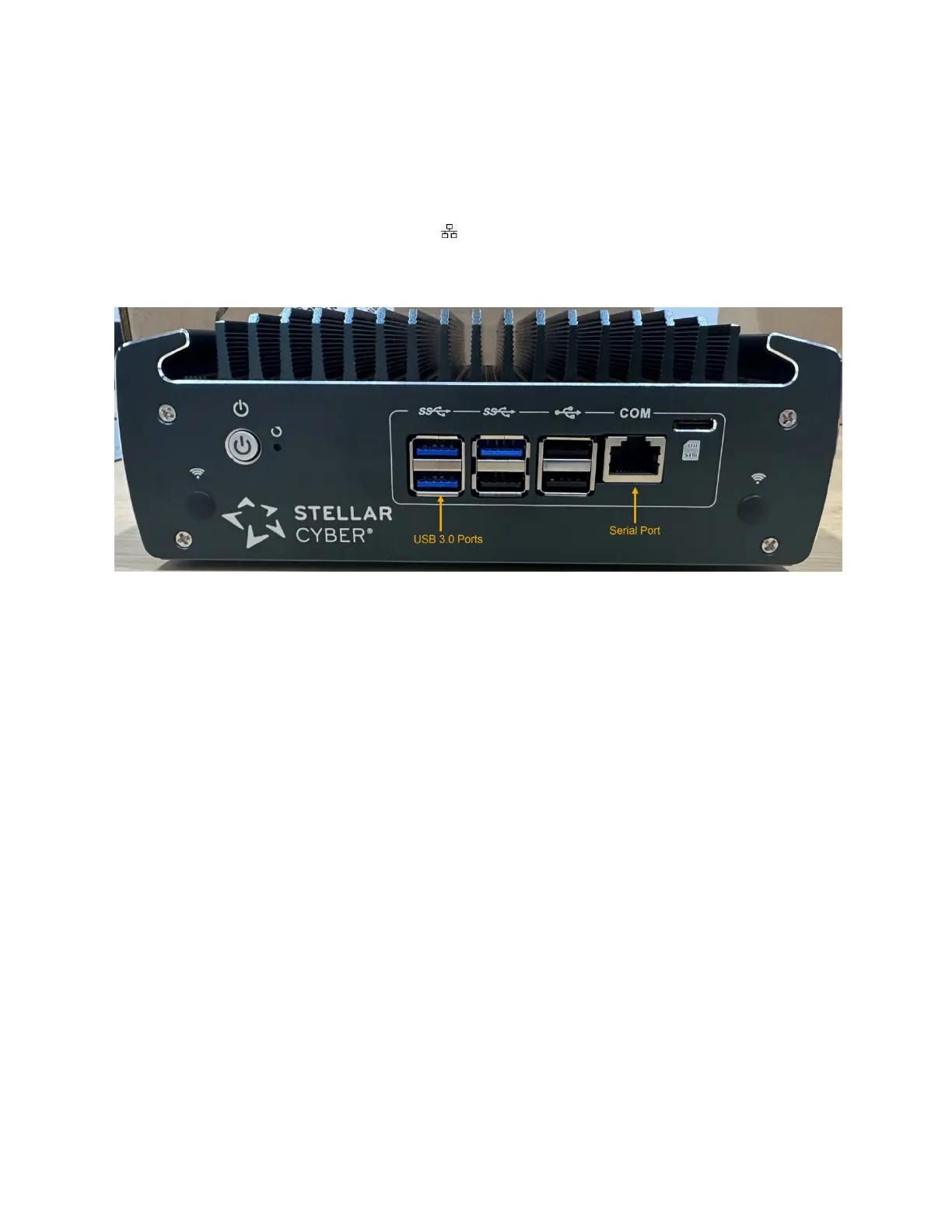 The USB and serial console ports are at the front of the appliance. The HDMI and eth0