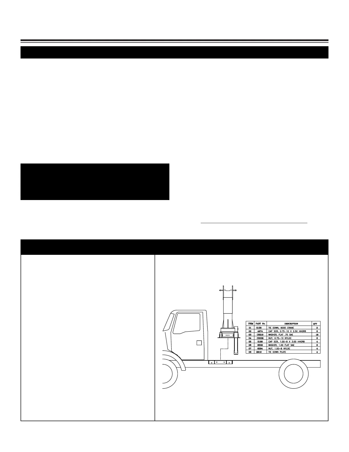 7. Mount crane using 1” Grade 8 bolt, flat washers,