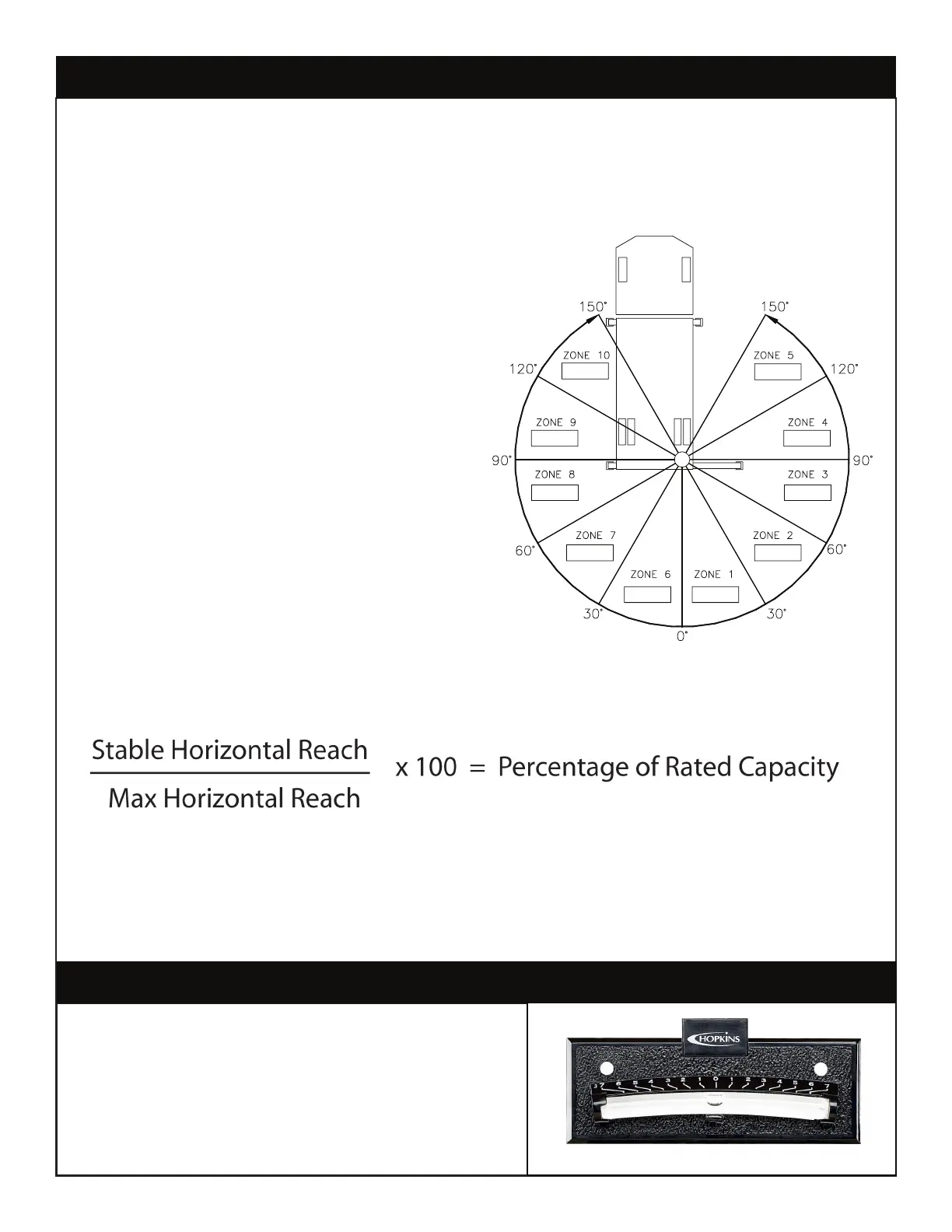 Maximum horizontal reach multiplied by 100 equals the percentage of rated capacity for this