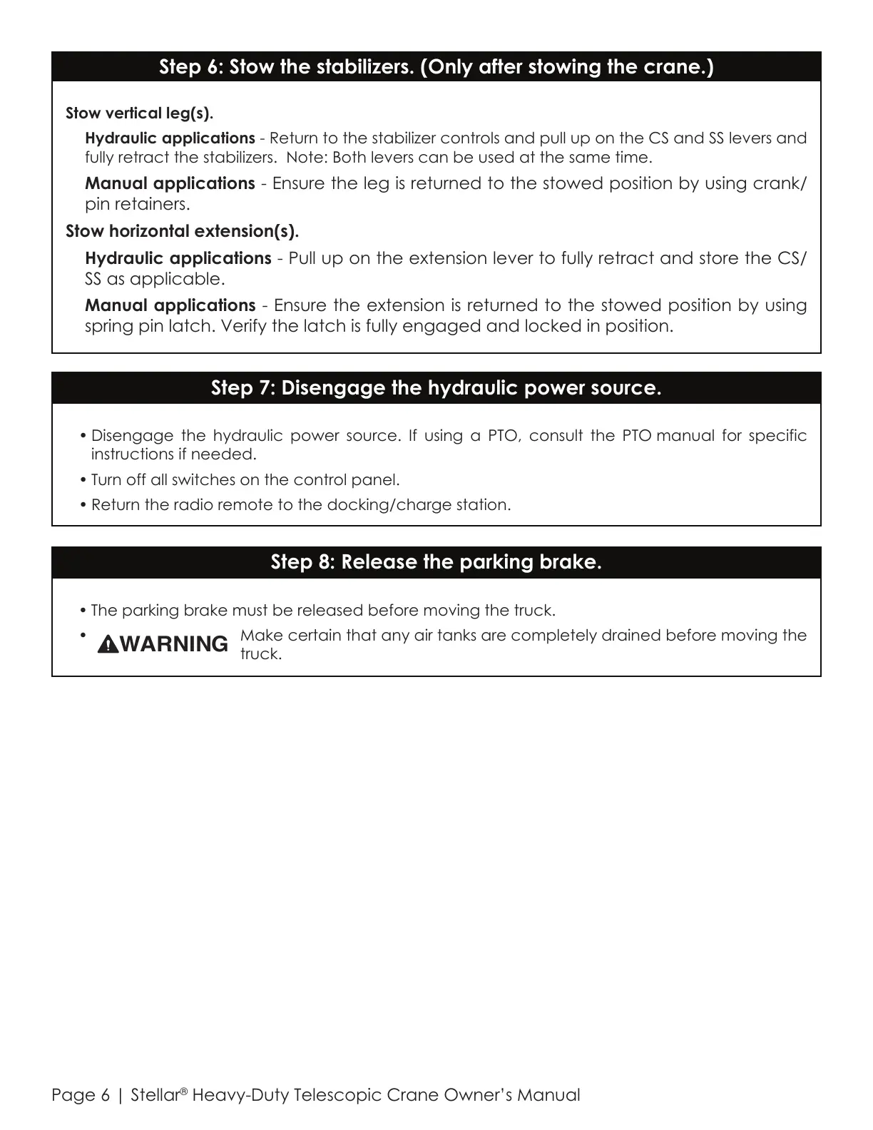Step 6: Stow the stabilizers. (Only after stowing the crane.)