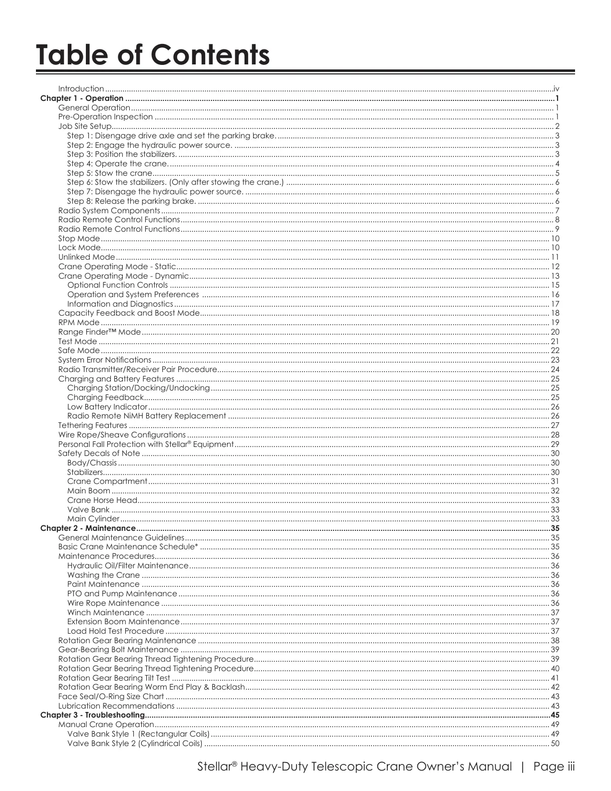 Heavy-Duty Telescopic Crane Owner’s Manual | Page iii