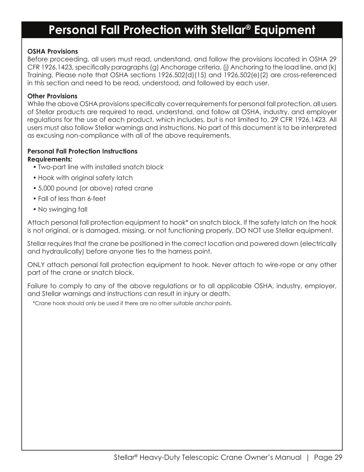 of Stellar products are required to read, understand, and follow all OSHA, industry, and employer