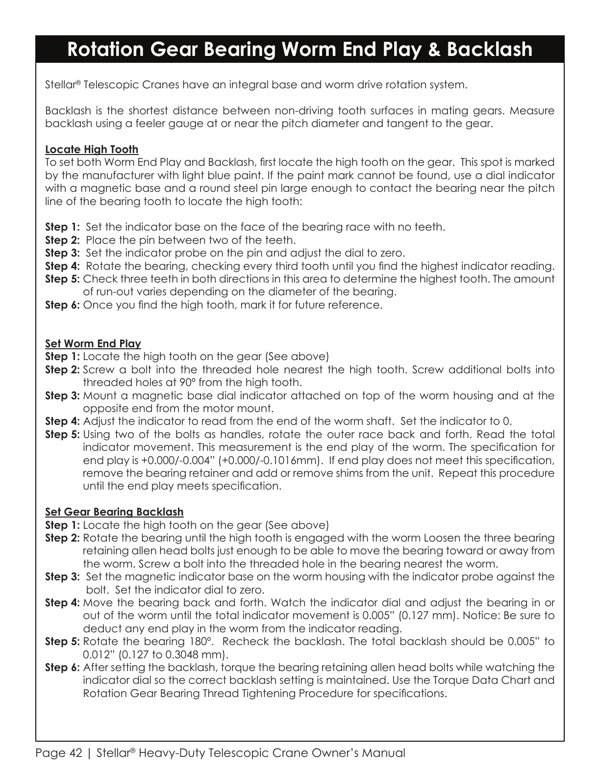 Rotation Gear Bearing Thread Tightening Procedure for specications.