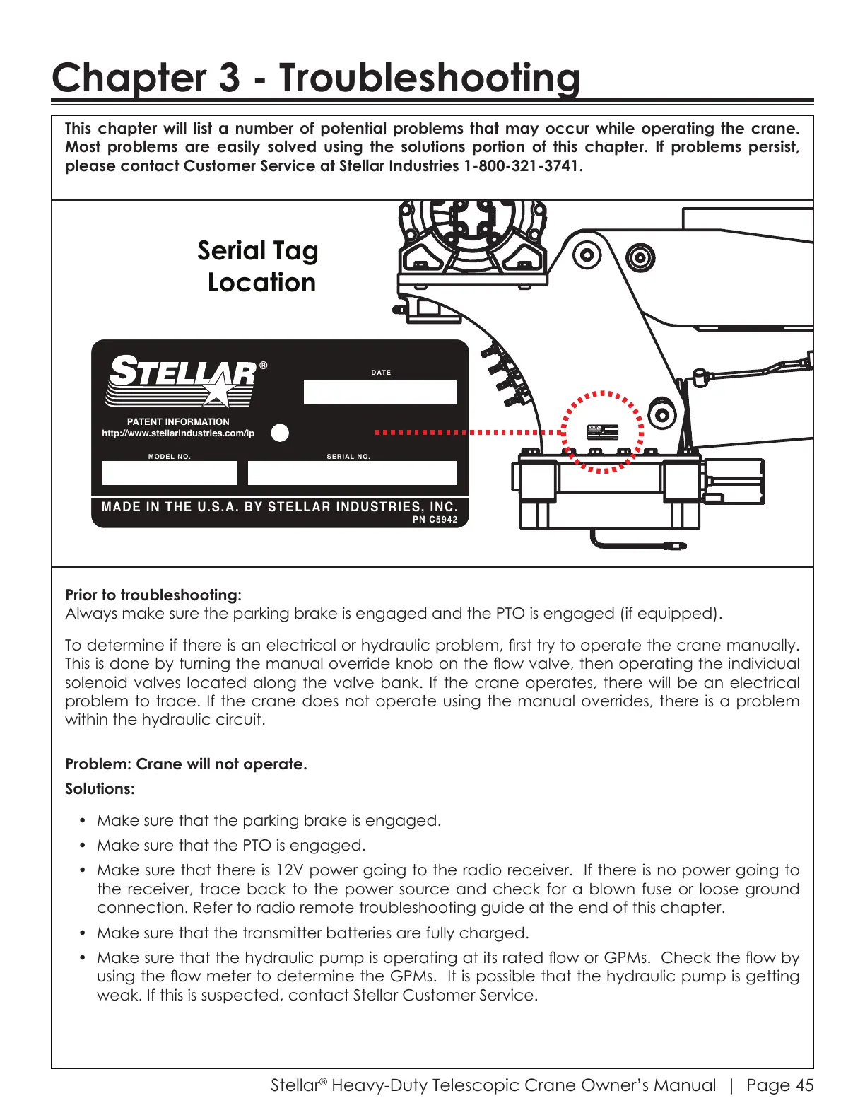 please contact Customer Service at Stellar Industries 1-800-321-3741.
