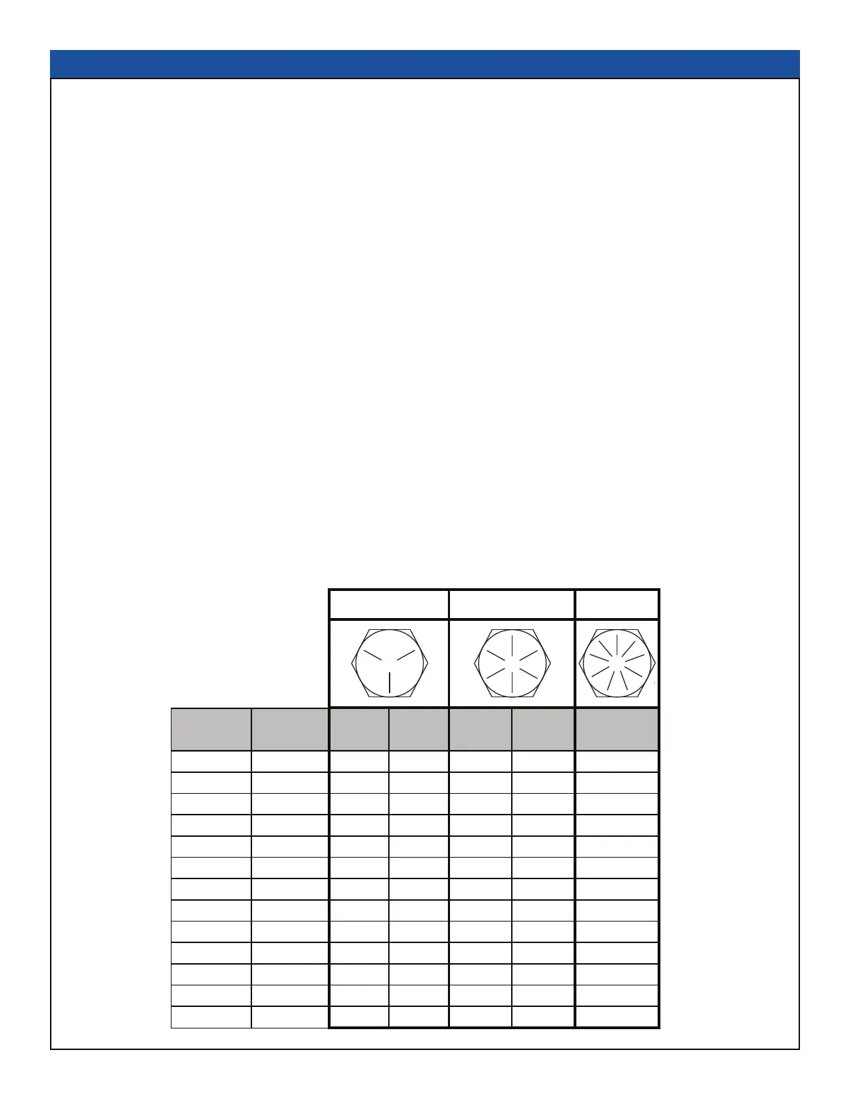 values shown in the chart below, applied to the nut, not to the bolt head. Tighten toothed or serrated-