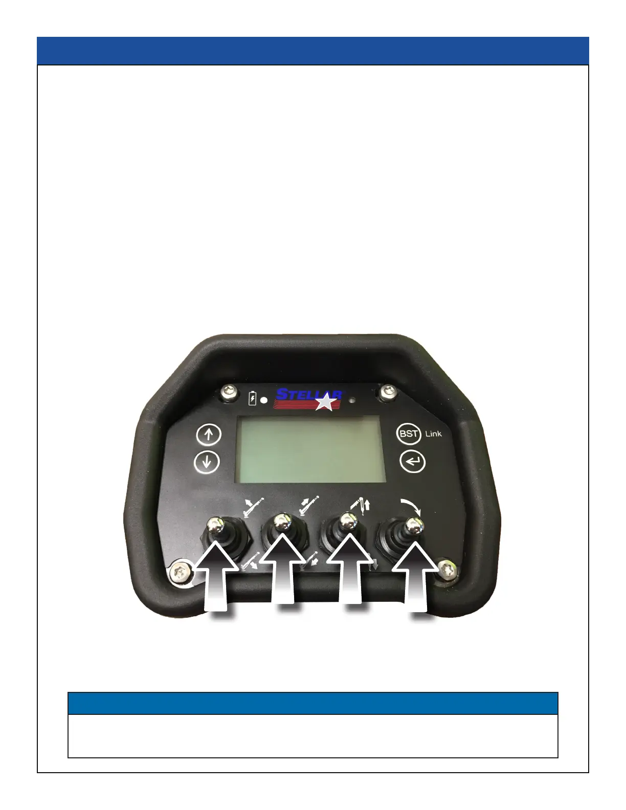 A. Push the four crane function switches up and hold until the screen reads “STB” in the upper right