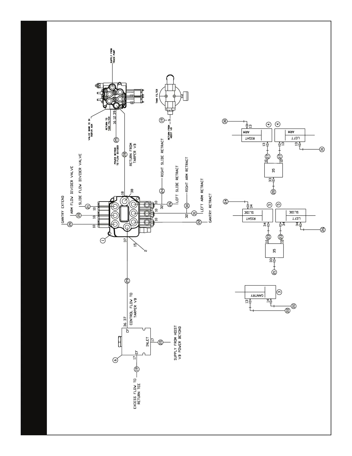 Route the hydraulic hoses and components as shown: