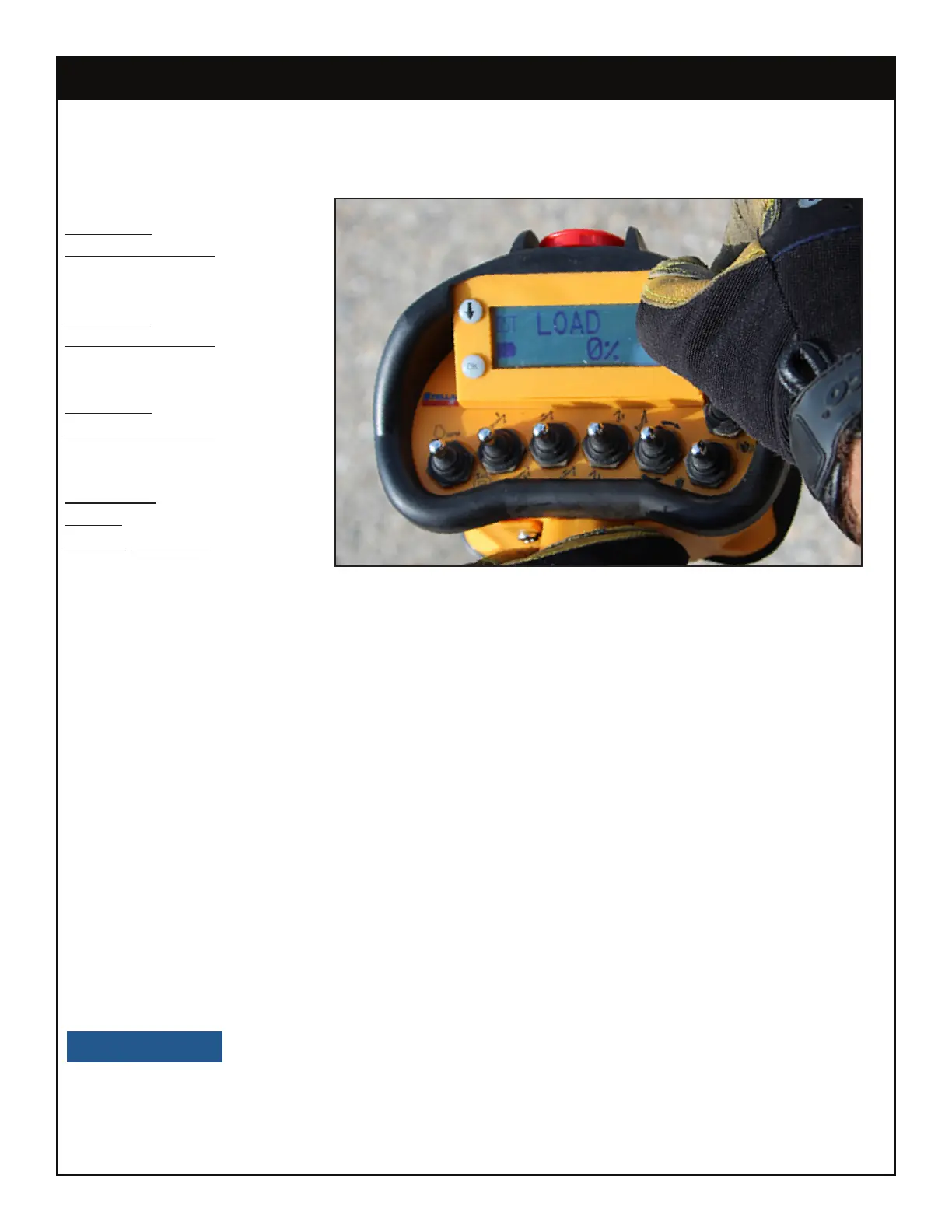 overload shutdown, the operator will need to set the load down and reposition the truck.