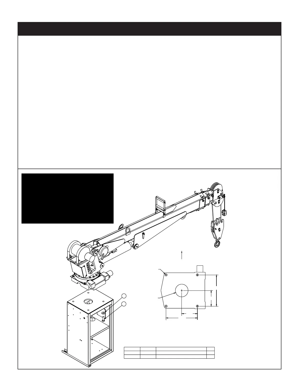 9. Secure the crane using the mounting hardware provided. Note: longer or shorter cap screws may be