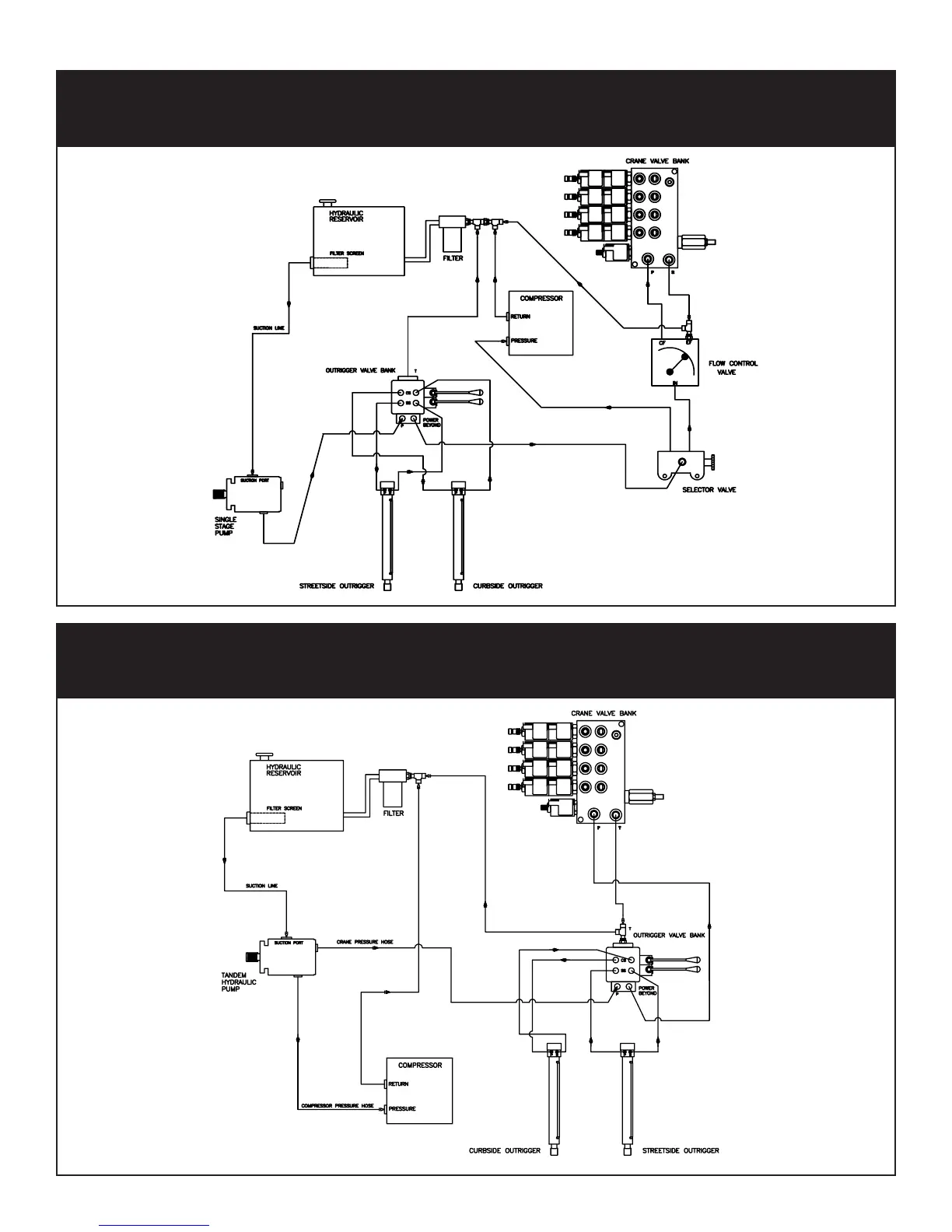stellar labs V480 - Typical Hydraulic Circuit for Tandum (Two Part) Pump with Multiple Components; Typical Hydraulic Circuit for Single Stage Pump with Multiple Components