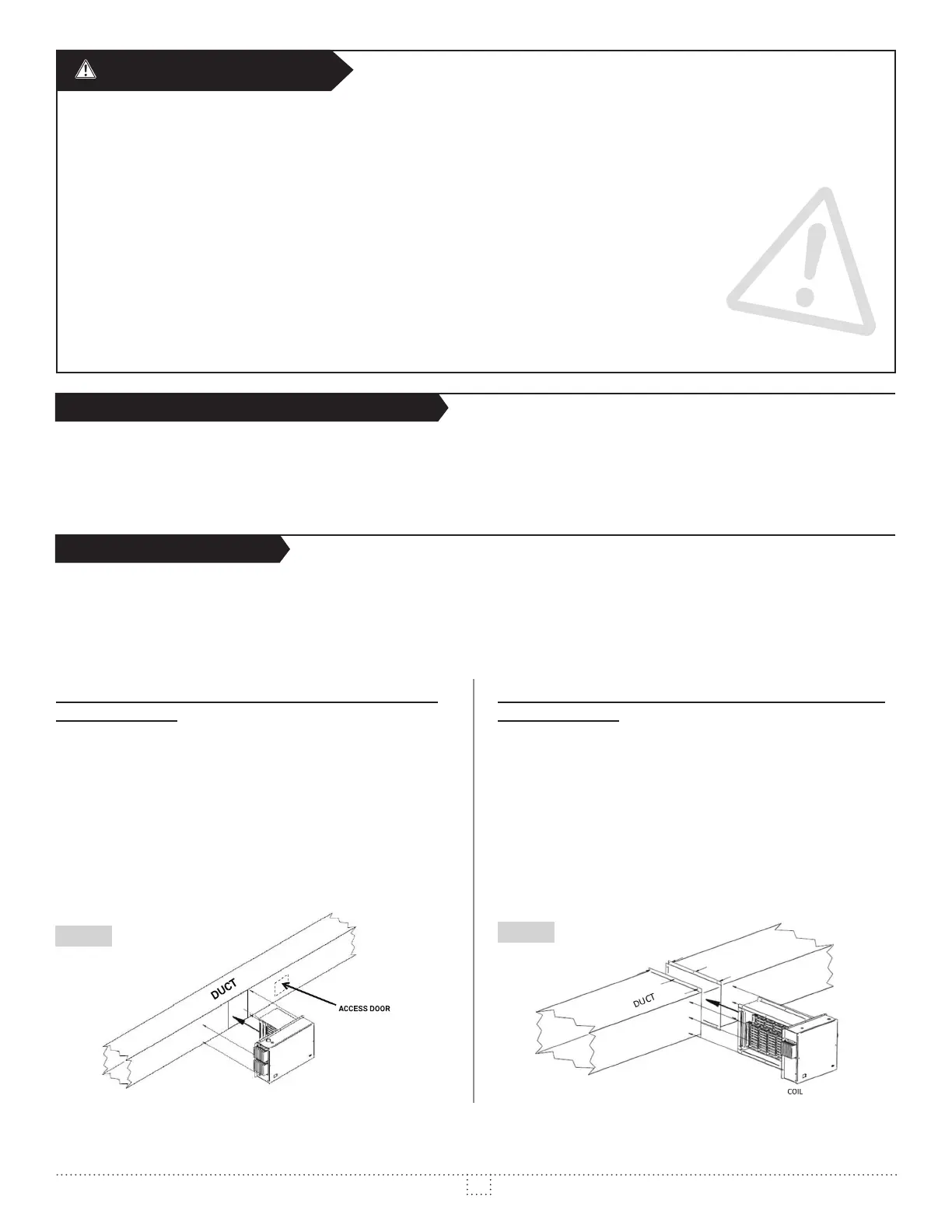 CAUTION: NEVER USE A STANDARD DUCT HEATER FOR AN APPLICATION WITH A RISK OF EXPLOSION.