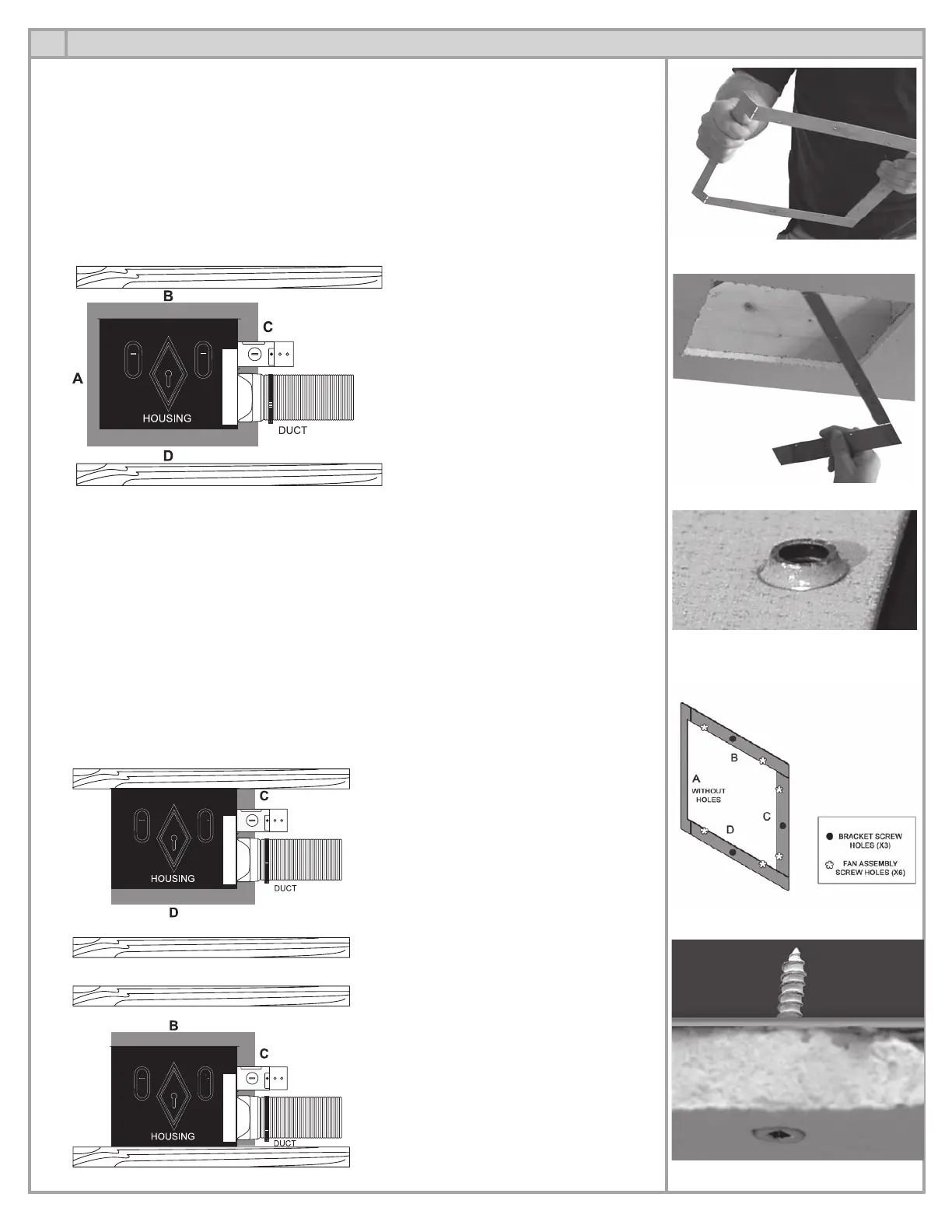 the ceiling and then the bracket. Avoid countersinking the screws below the surface of the