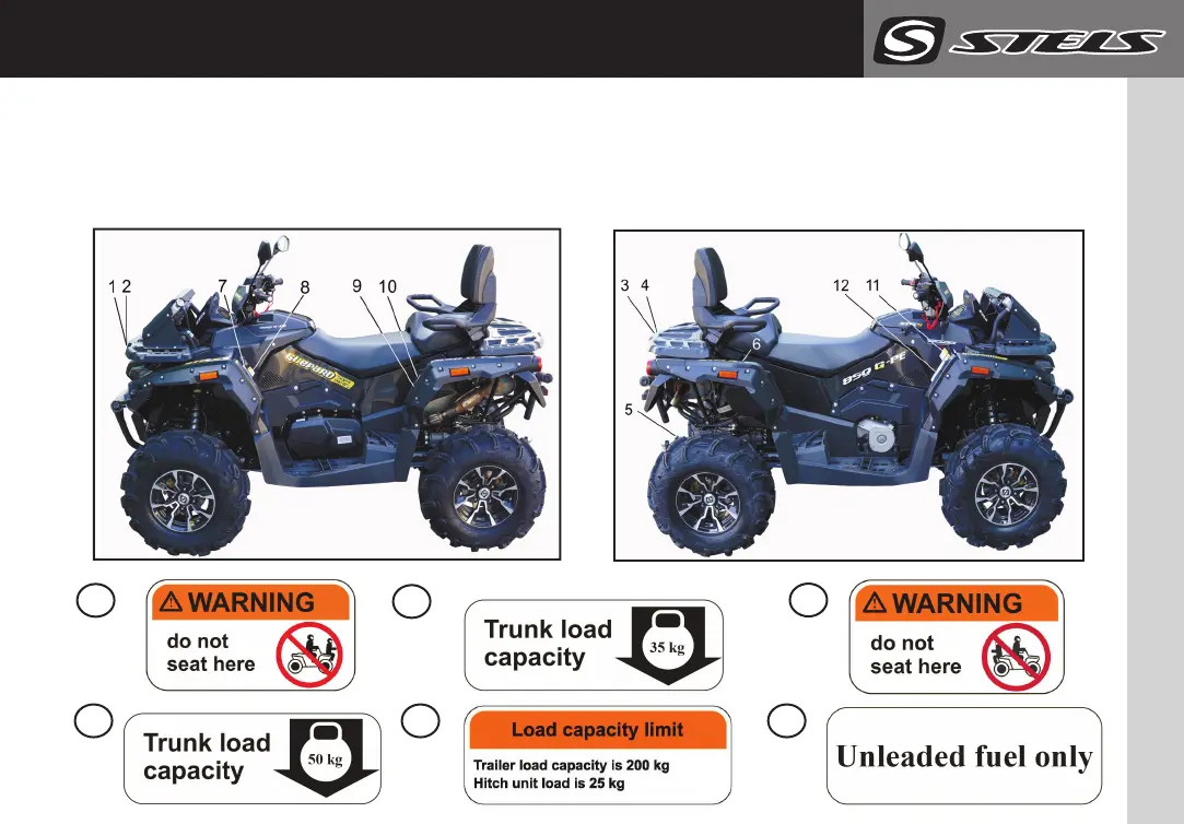 Stickers with warning notices and their location