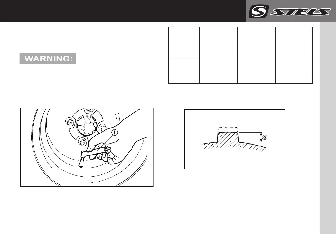 tyre. Bring the tyre pressure to the following standard