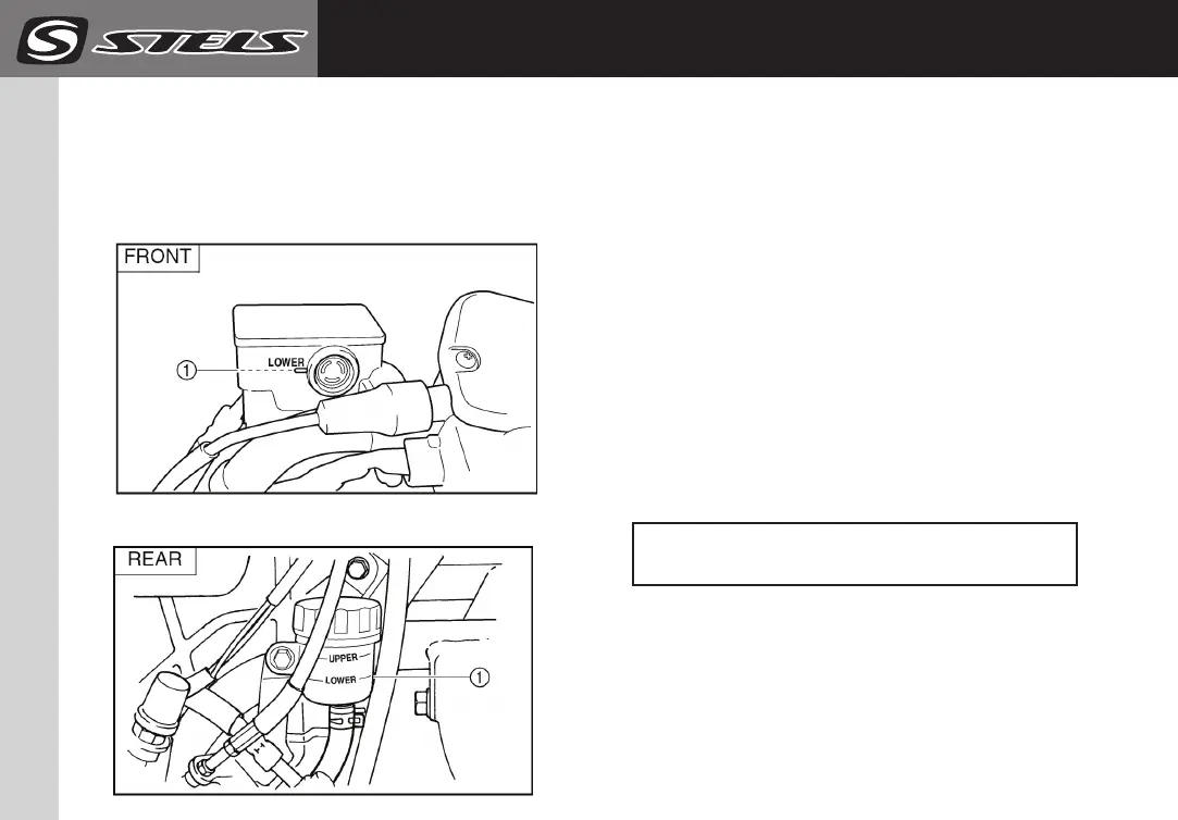 ● Check the brake fluid level with the tank