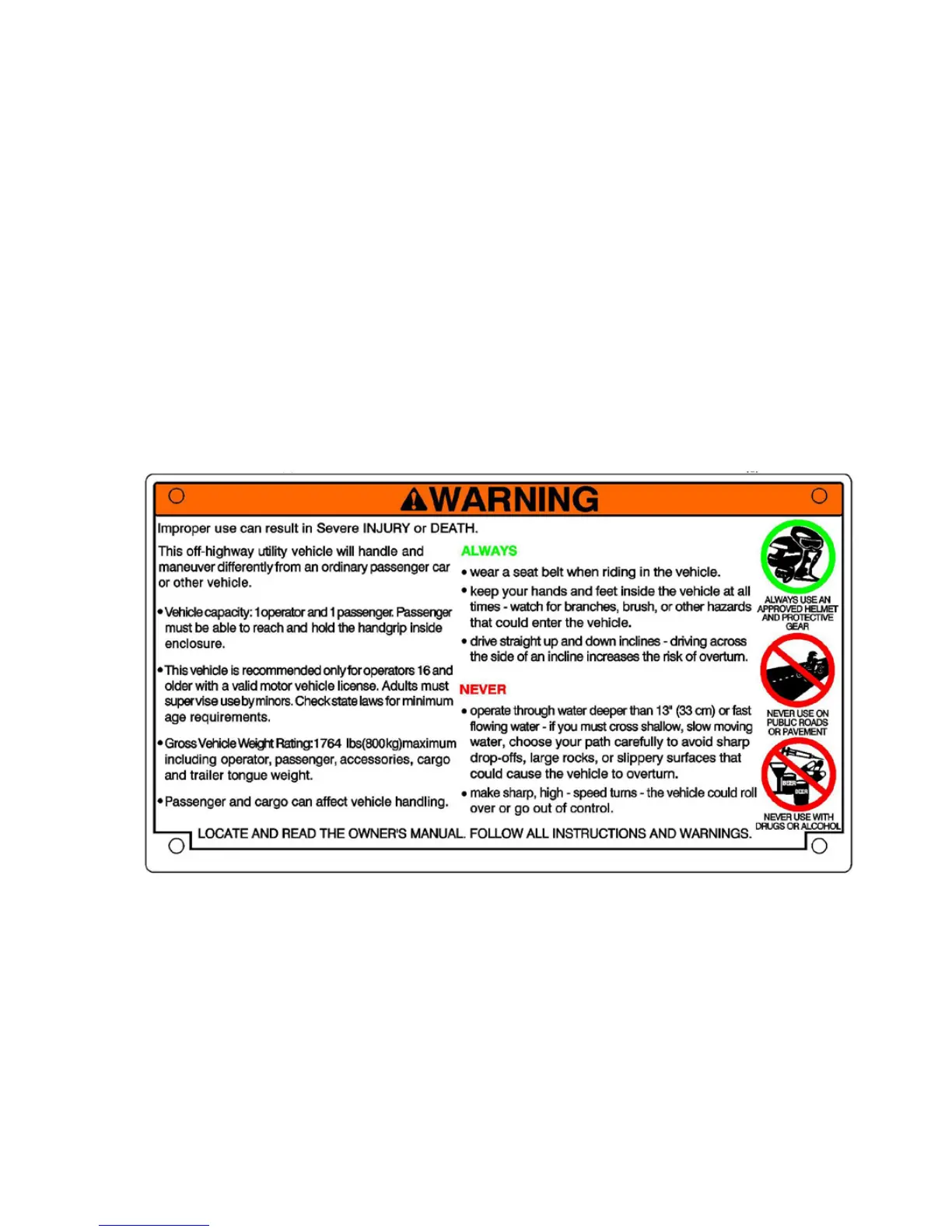 Never remove any labels from your vehicle. If a label becomes difficult to read or