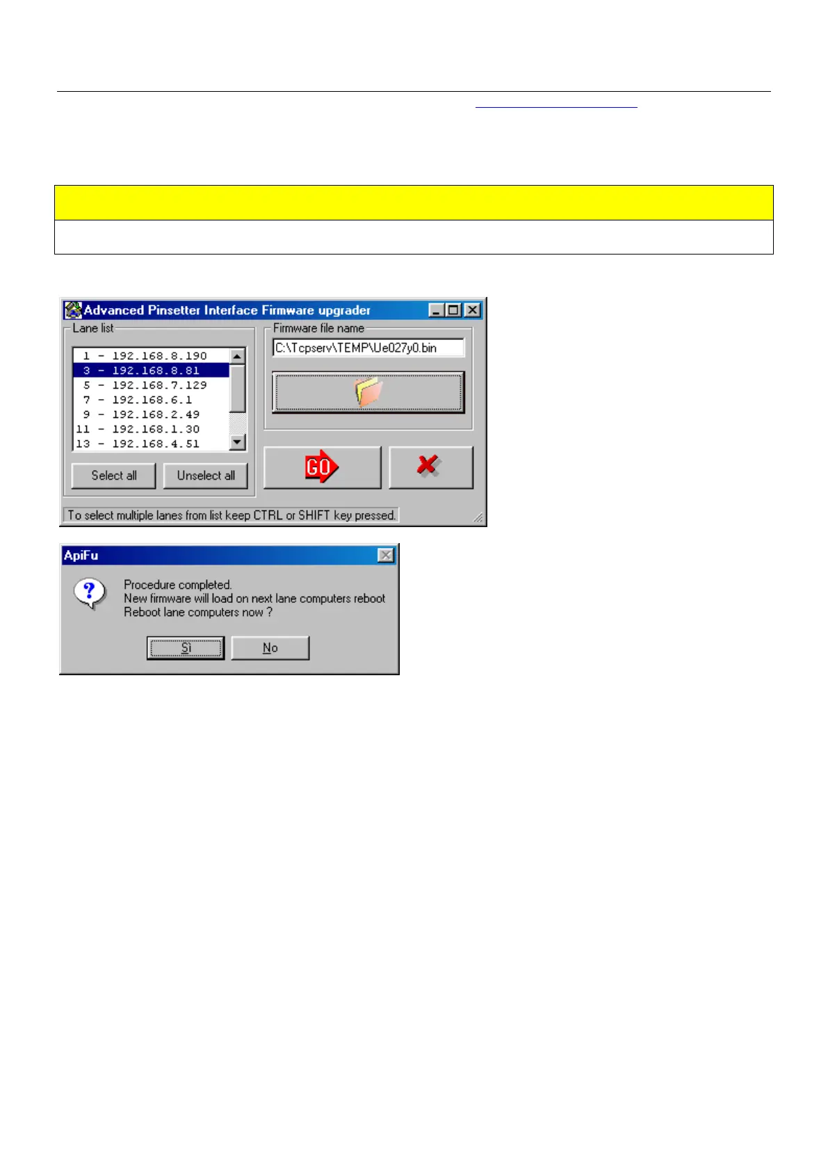 API Software update compatible with your pinsetter. The Steltronic customer service will send a