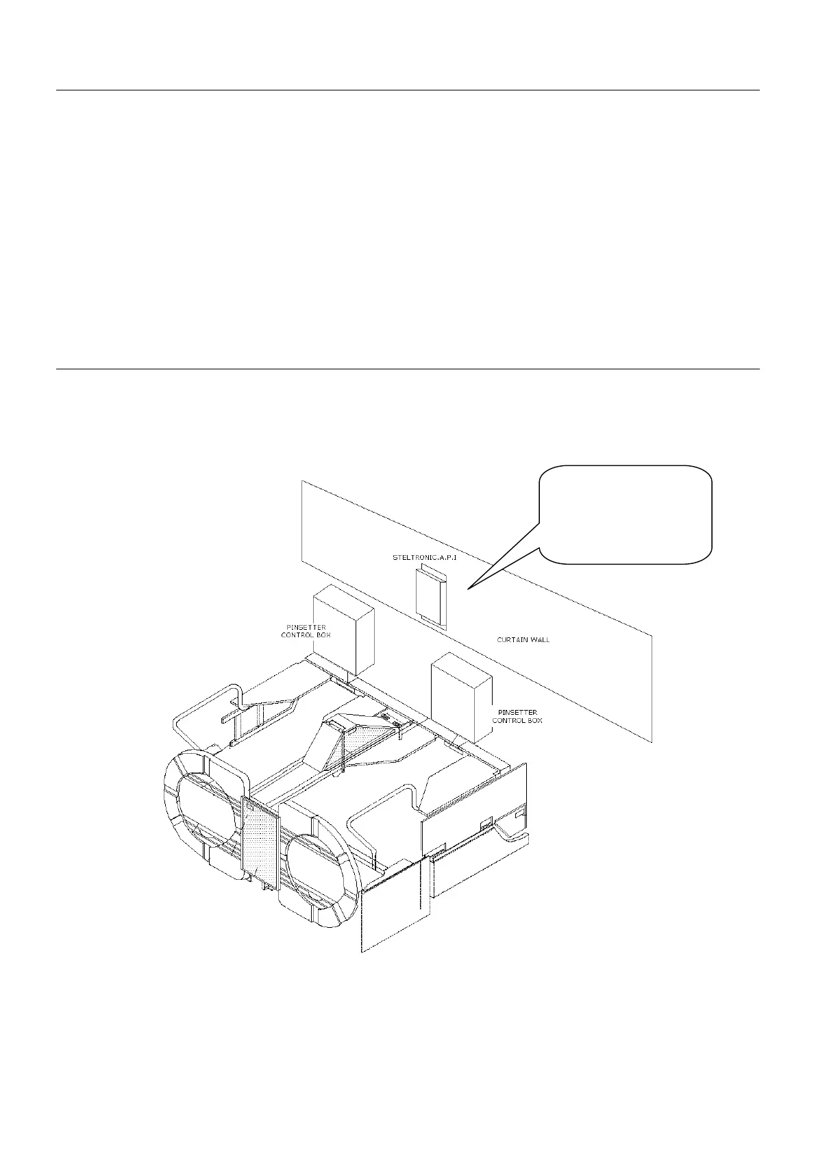 • Position the A.P.I. interface near the pinsetter (example, on the curtain wall), keeping the