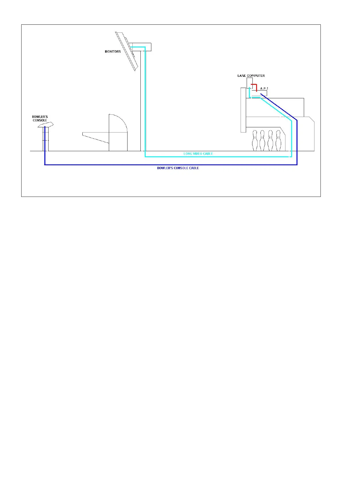 A.P.I. This cable is not necessary for installation with wireless or Touch Screen Bowler’s Console. The