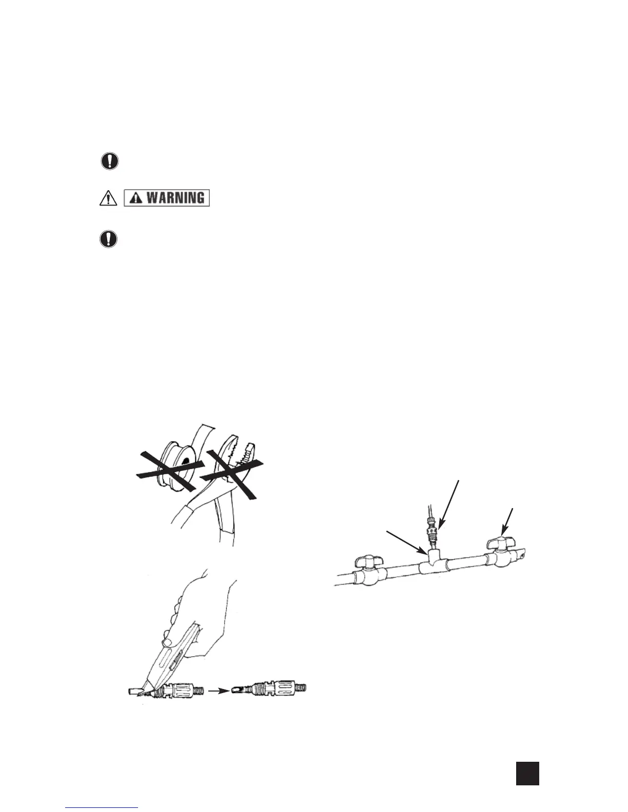 DO NOT use thread sealant tape on pump tube connections or tools to