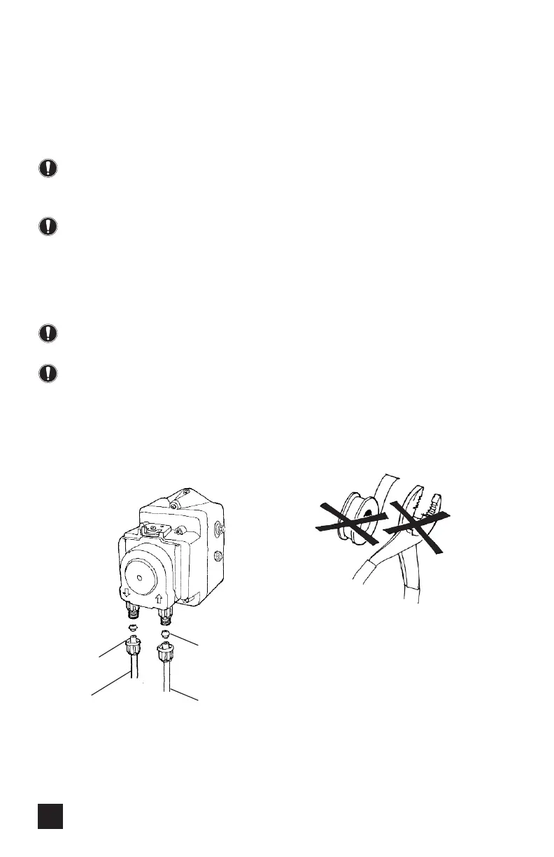 DO NOT use thread sealant tape on pump tube connections or tools to