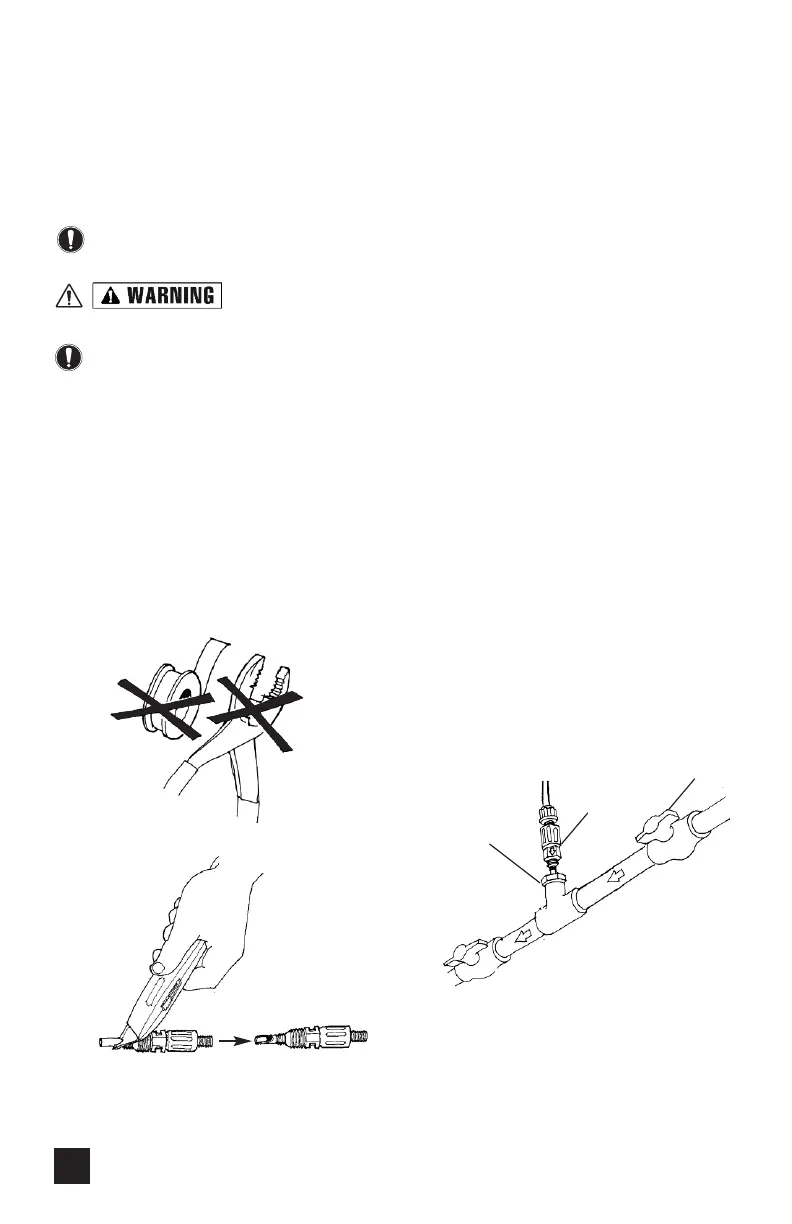 DO NOT use thread sealant tape on pump tube connections or tools to