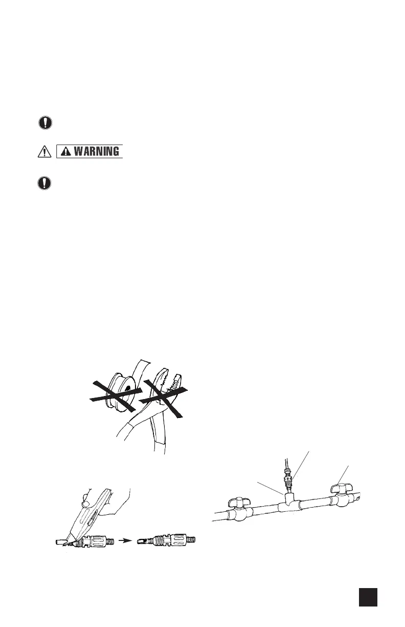 DO NOT use thread sealant tape on pump tube connections or tools to