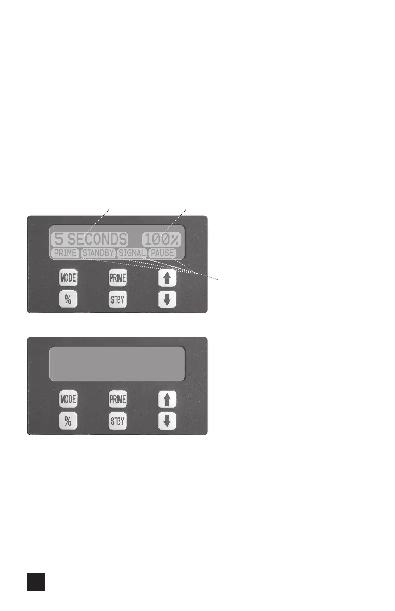 are “PRIME”, “STANDBY”, “SIGNAL”, “PAUSE” and “KEYPAD LOCKED” and represent the