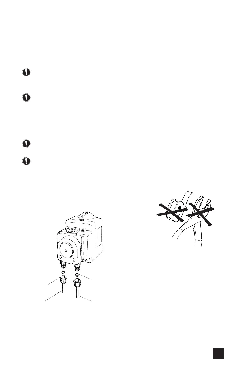 DO NOT use thread sealant tape on pump tube connections or tools to