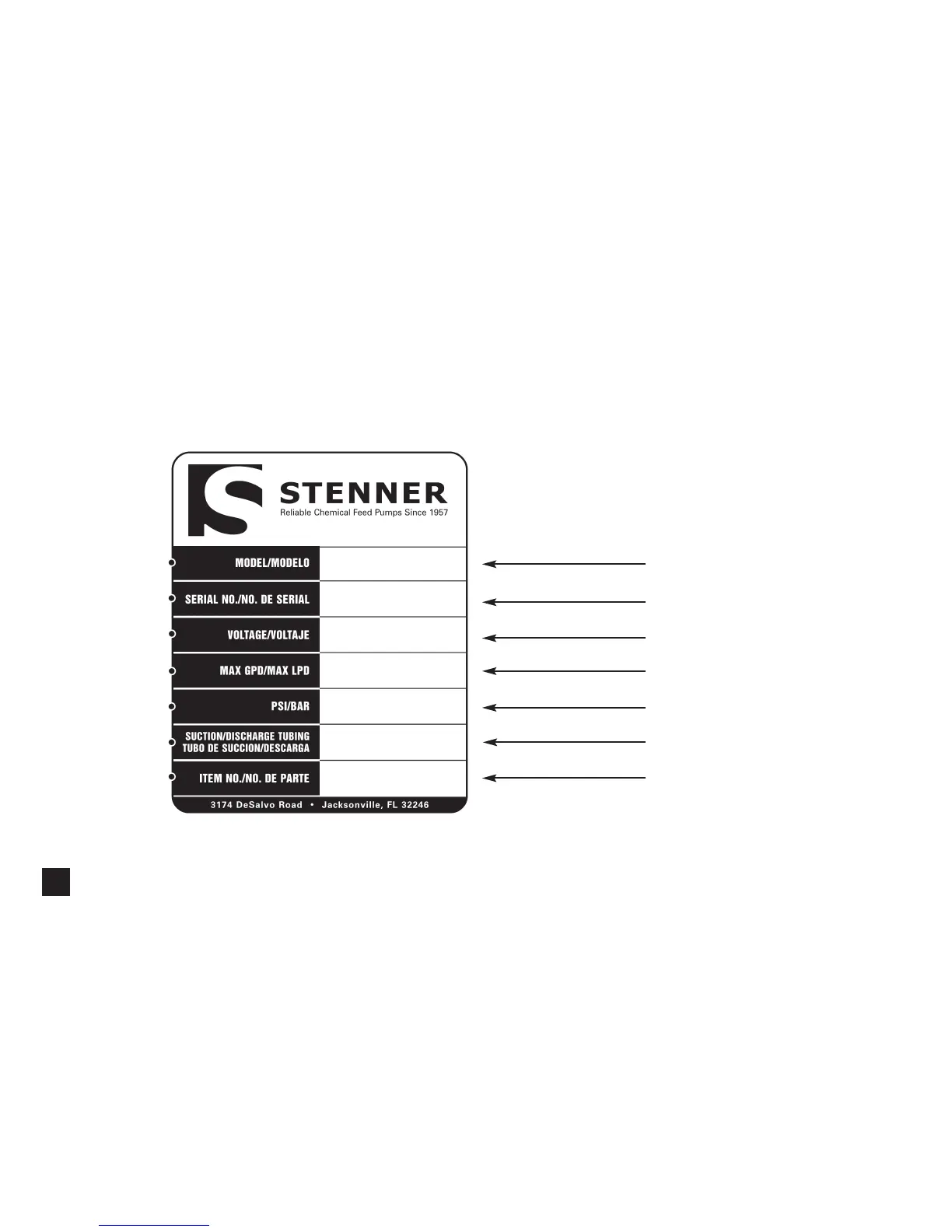 Stenner 45MHP2 - Pump Identification; Box Label Details